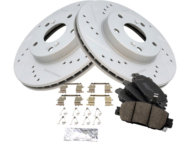 (1) Front Ceramic Brake Pad Set; (1) Front Premium G-Coated Performance Brake Rotor Set