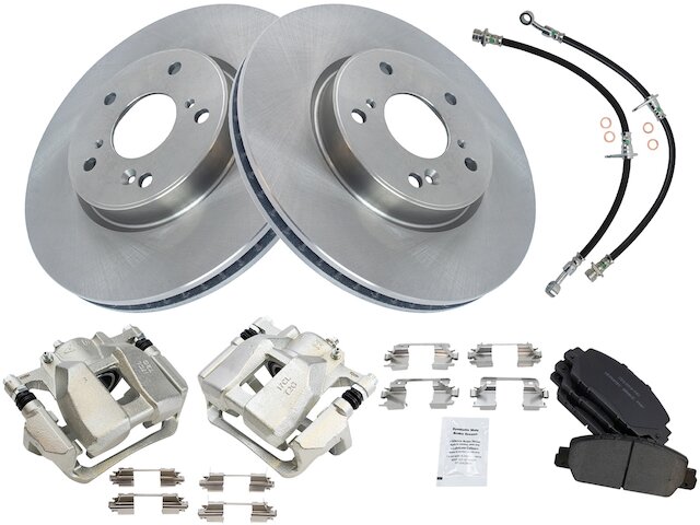 (2) Front Brake Rotors; (1) Front Ceramic Brake Pad Set; (2) Front Brake Calipers; (2) Front Replacement Brake Hoses