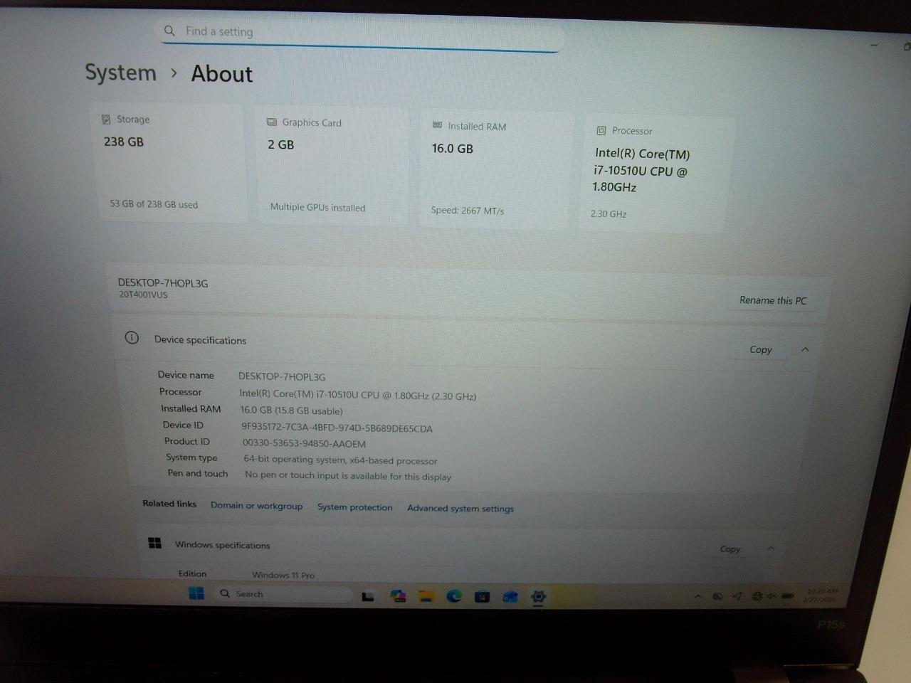 You are bidding for a Lenovo ThinkPad P15s 15.6" i7-10510U 1.8GHz 16GB 256GB SSD Quadro P520 (H931) This item has been successfully tested for power on. Item is offered with a 30-day money back guarantee. The photos are of the actual item that the winner will receive and no additional items are available to include in this auction that are not pictured in the photos.