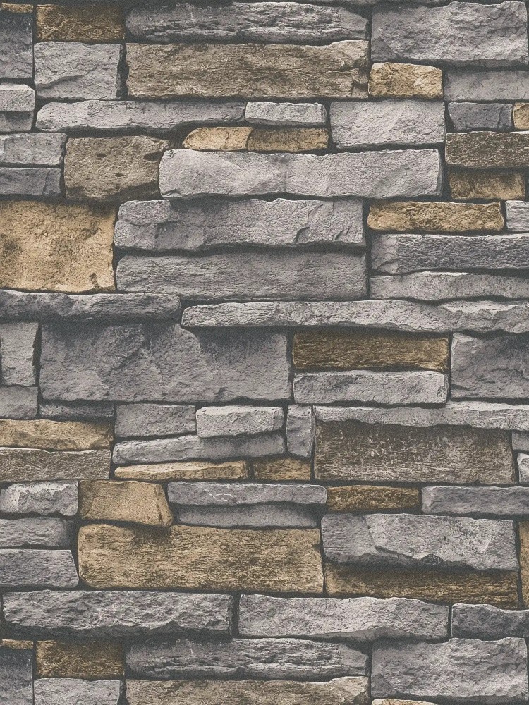 Carta da parati in tessuto non tessuto con aspetto pietra con muratura 3D: beige, grigio, Marrone