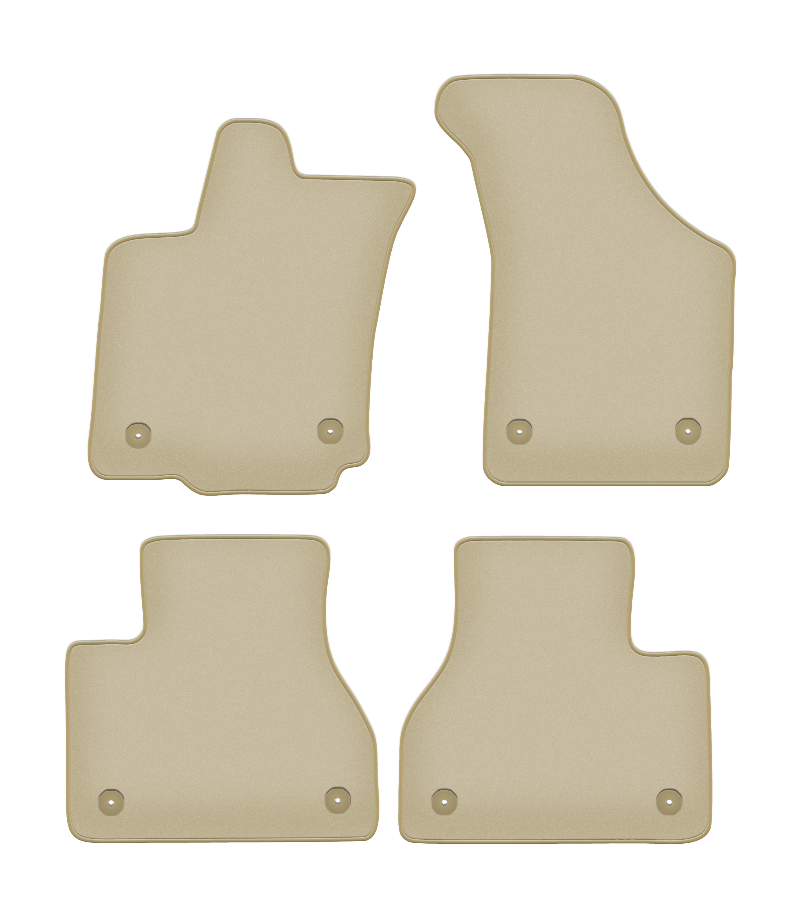Das Set CARLUX Beige besteht aus hochwertigen Veloursmatten mit verstärktem Fahrerbereich. Die Fahrermatte verfügt über eine zusätzliche Verstärkung im Fersenbereich, was die Lebensdauer deutlich erhöht. Die integrierten Befestigungssysteme verhindern ein Verrutschen während der Fahrt.