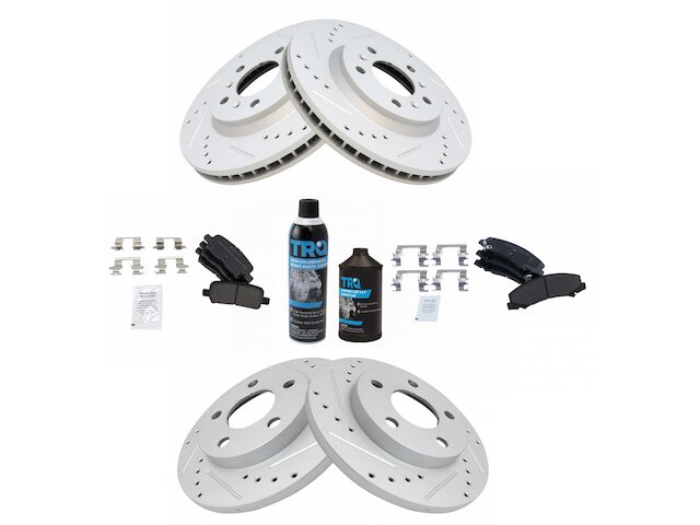 - Package Contents: (1) Front Semi-Metallic Brake Pad Set; (1) Rear Semi-Metallic Brake Pad Set; (1) Brake Cleaner & Fluid Kit; (1) Front Premium G-Coated Performance Brake Rotor Set; (1) Rear Premium G-Coated Performance Brake Rotor Set