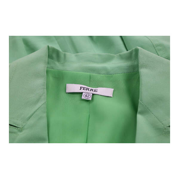 Description: Ferre blazer, fits small.Size 42. Gender: Womens Condition: Very Good. Brand: Ferre Product Type: Blazer Era: 1990S Colour: Green Fabric: SilkFit & Length:Extra Attributes: