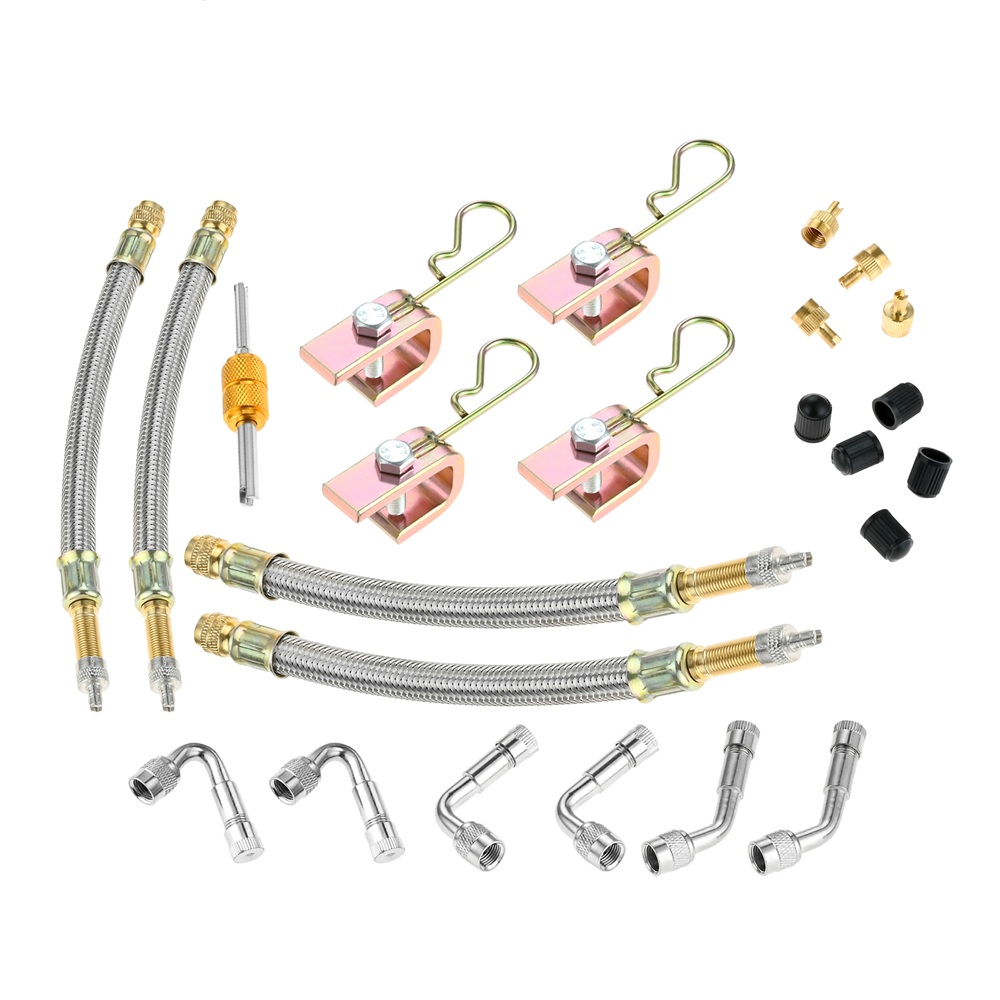 1.The dual tire valve extension is made of quality stainless steel and braided hose.