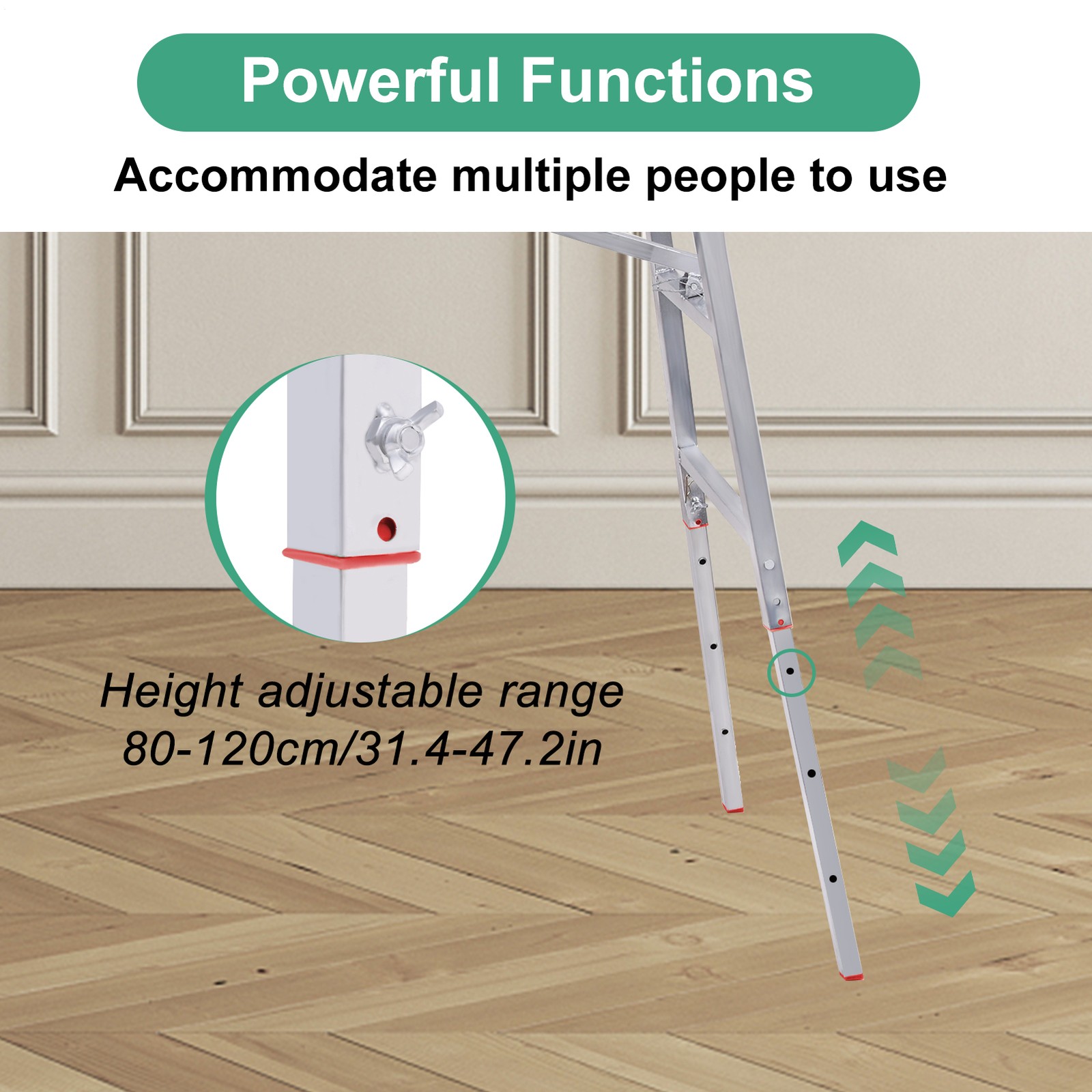 Robust Multi-Use Design: Crafted with strong steel and thickened pipes, this folding scaffolding ladder boasts a powerful carrying function, galvanized to resist rust, and supports multiple users simultaneously.