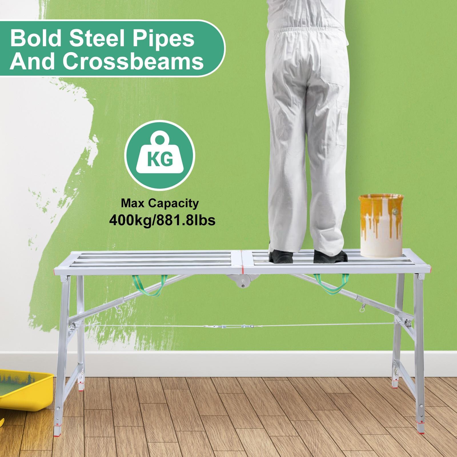 Space-Saving Design: Effortlessly foldable and ultra-lightweight, this scaffolding ladder is a breeze to store and ideal for transport in your car, ensuring convenience wherever you go.
