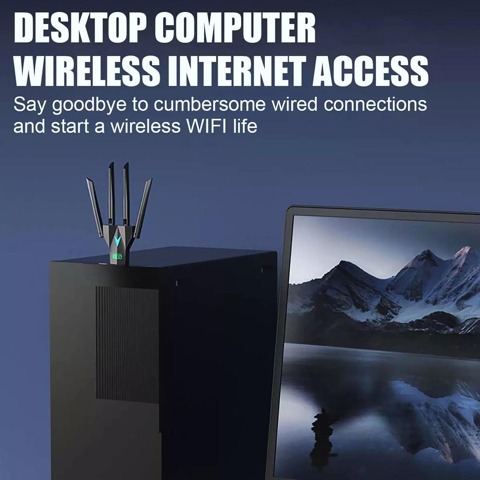 Equipped with four external antennas, this network card provides enhanced signal strength and coverage, ensuring a stable connection even in challenging environments.