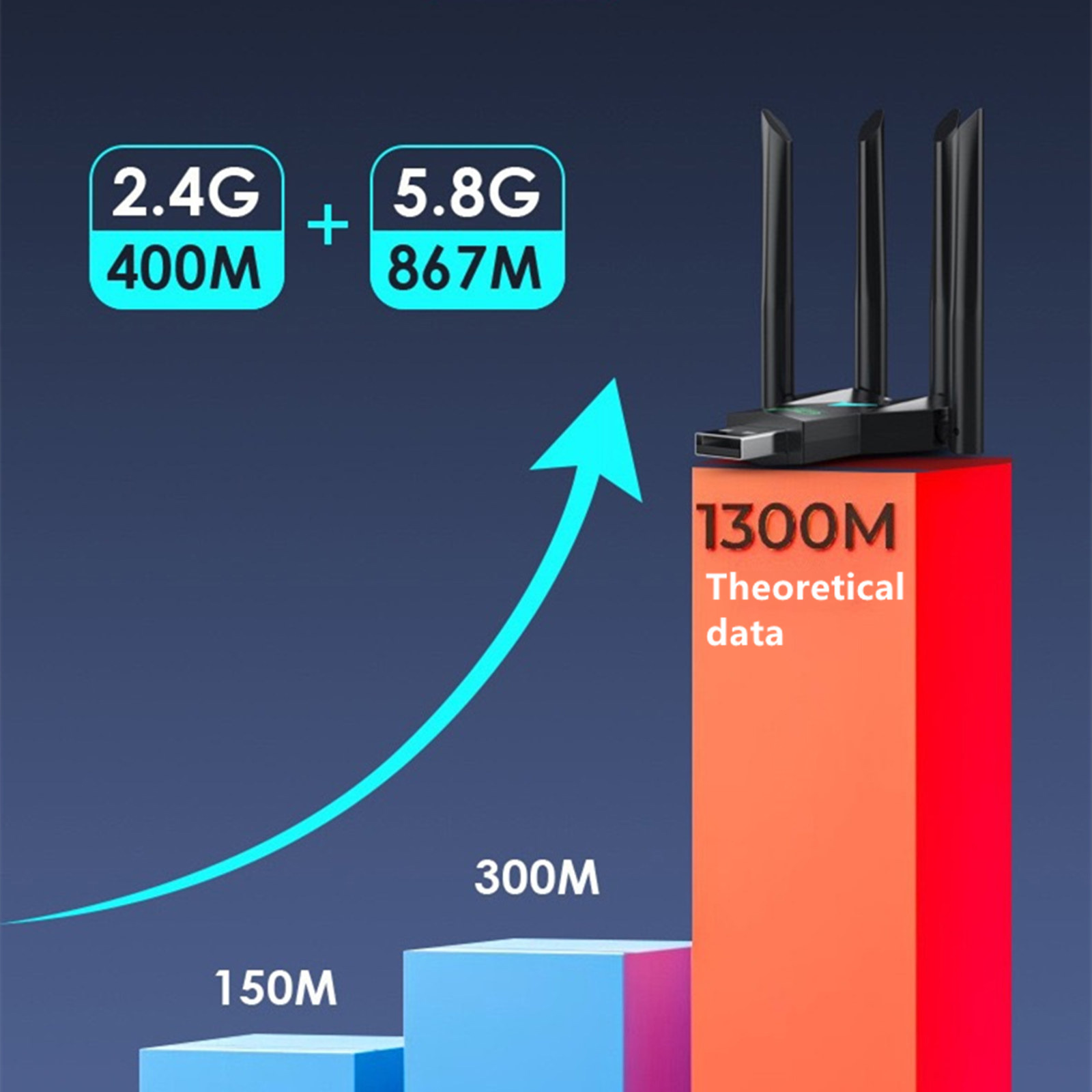 High Transmission Rate: With a transmission rate of up to 1300Mbps (Theoretical data), experience smooth online gaming, HD video streaming, and fast downloads.
