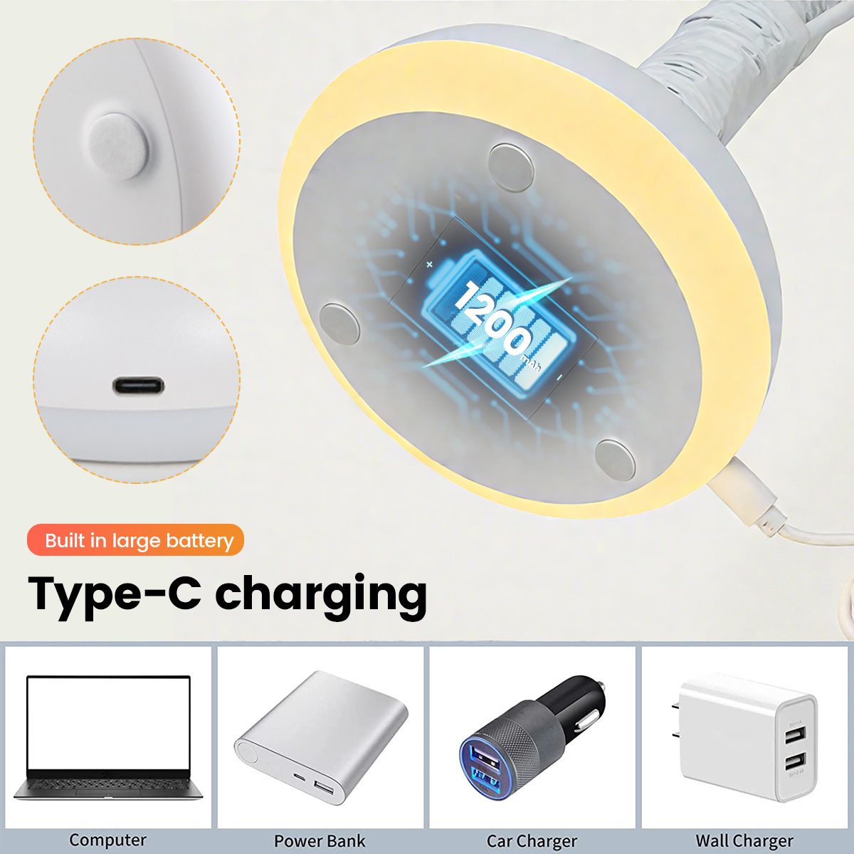 branches. Powered by a rechargeable built-in battery, the LED bulb does