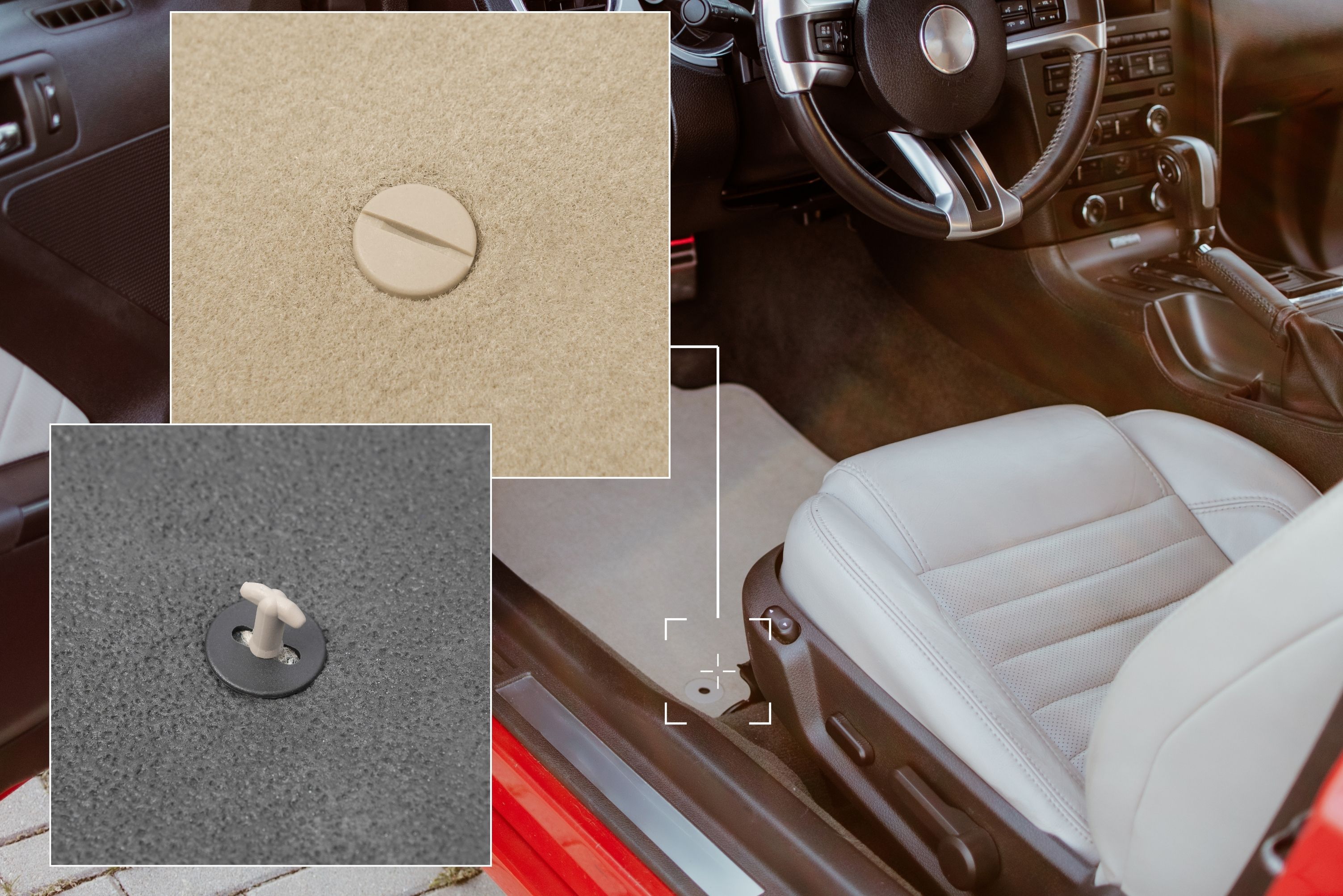Dank der passenden Befestigungssysteme bleiben die Matten sicher an ihrem Platz. Bitte prüfen Sie vor dem Kauf die vorhandenen Befestigungspunkte im Fahrzeug.