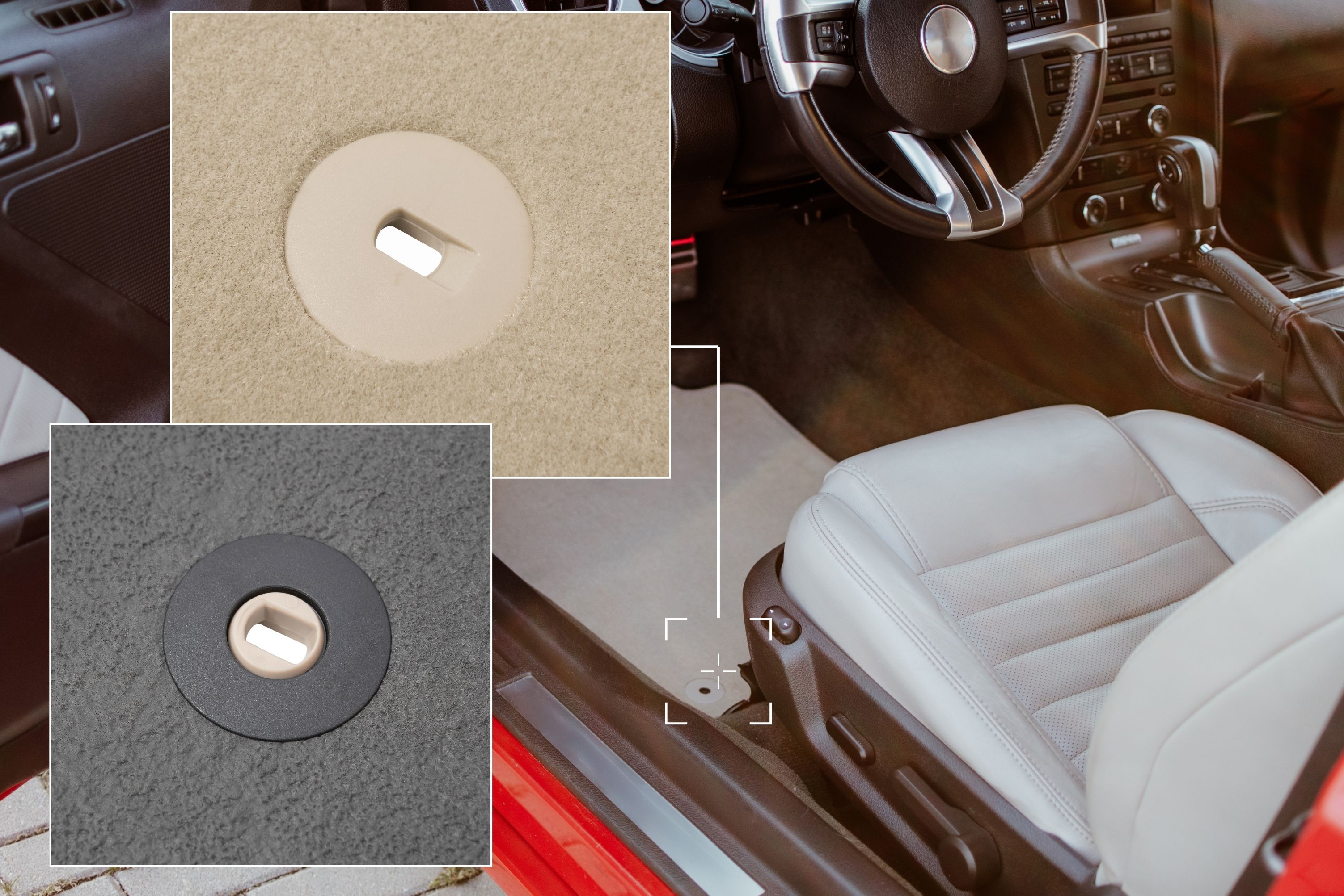 Dank der passenden Befestigungssysteme bleiben die Matten sicher an ihrem Platz. Bitte prüfen Sie vor dem Kauf die vorhandenen Befestigungspunkte im Fahrzeug.