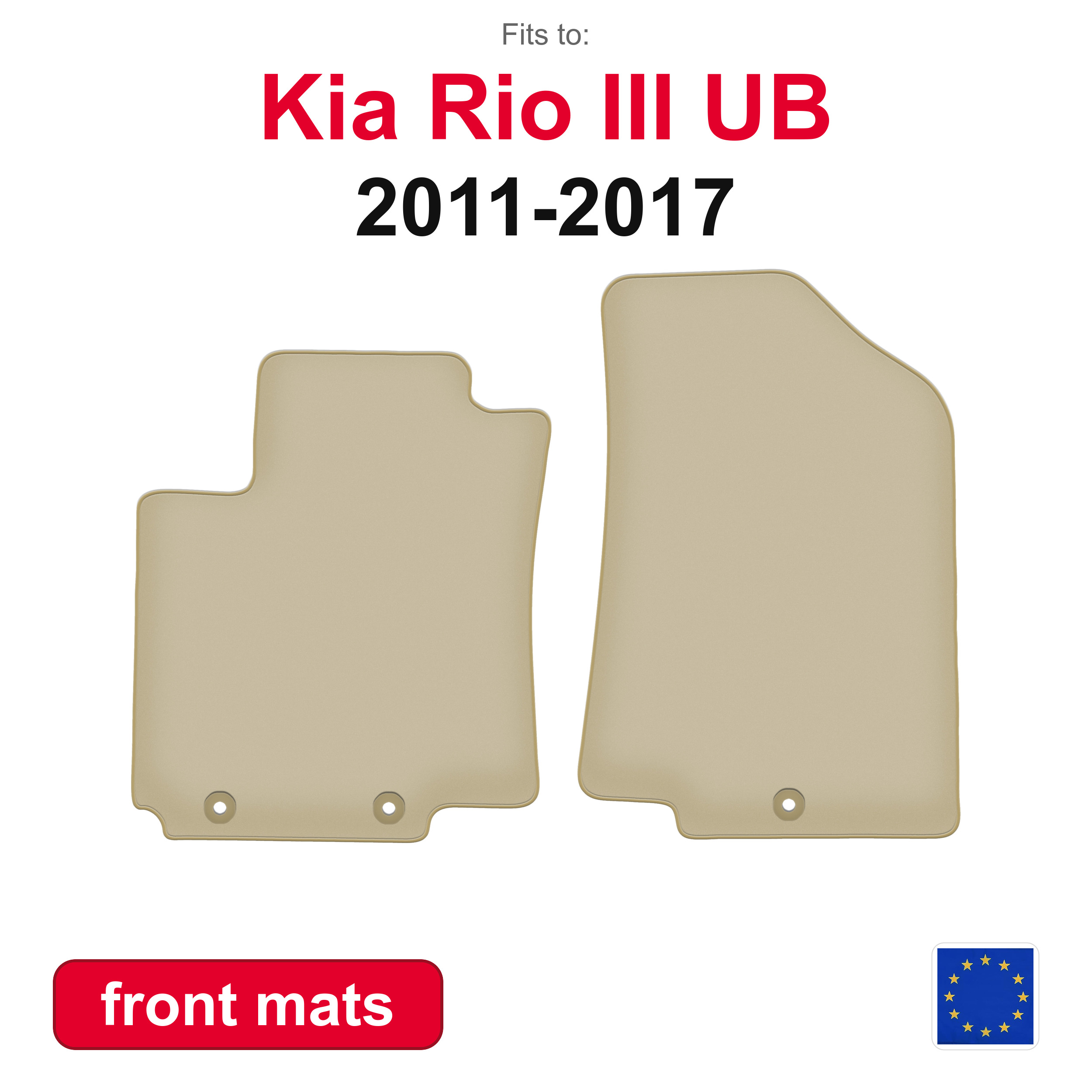 Die Matten sind exakt auf das Modell Kia Rio III UB abgestimmt und passen perfekt in den vorderen Fahrzeugbereich. Dadurch wird ein Verrutschen minimiert und der Innenraum im Bereich von Fahrer und Beifahrer optimal geschützt.