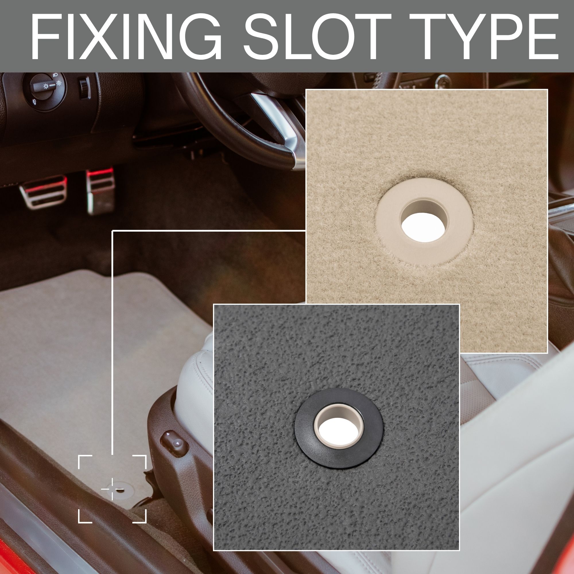 Dank der passenden Befestigungssysteme bleiben die Matten sicher an ihrem Platz. Bitte prüfen Sie vor dem Kauf die vorhandenen Befestigungspunkte im Fahrzeug.