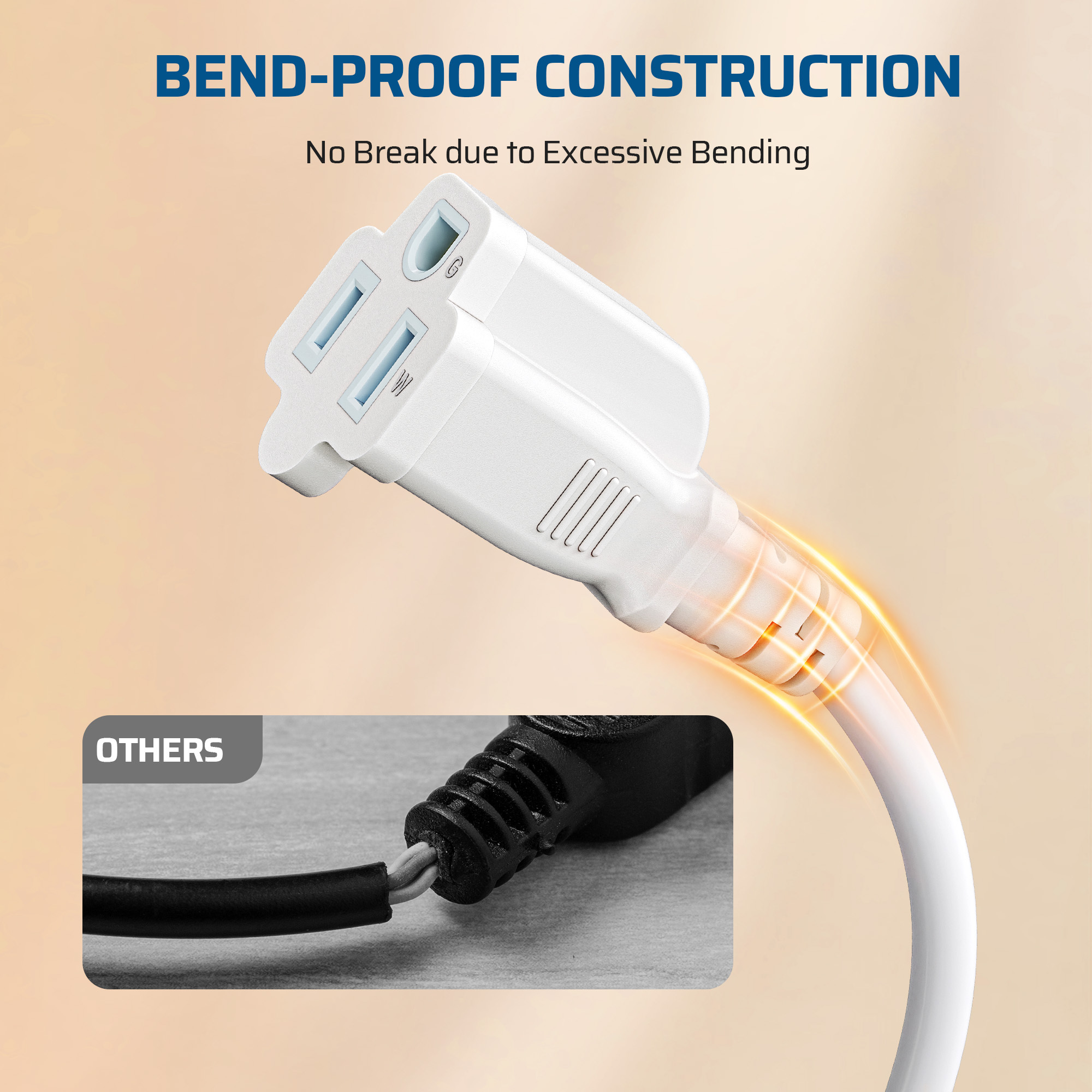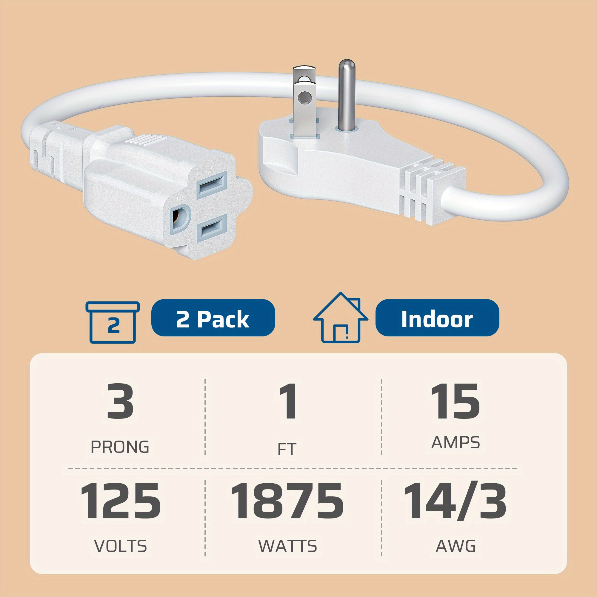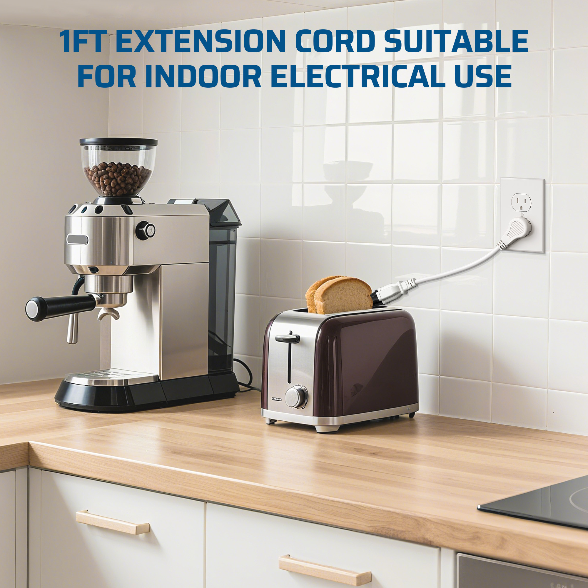 1FT Extension Cord for Tight Spaces: Short and slim, perfect for close-range use behind furniture or in narrow areas