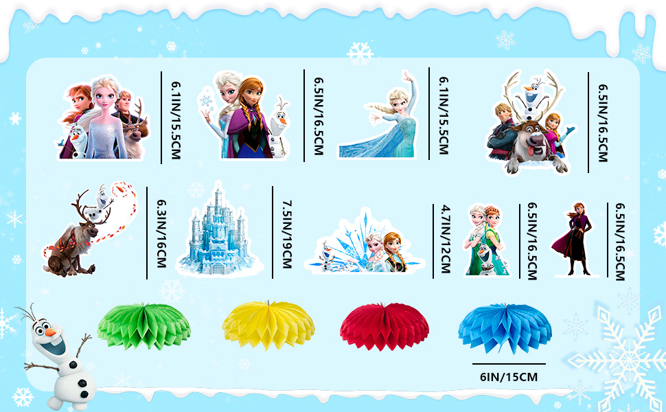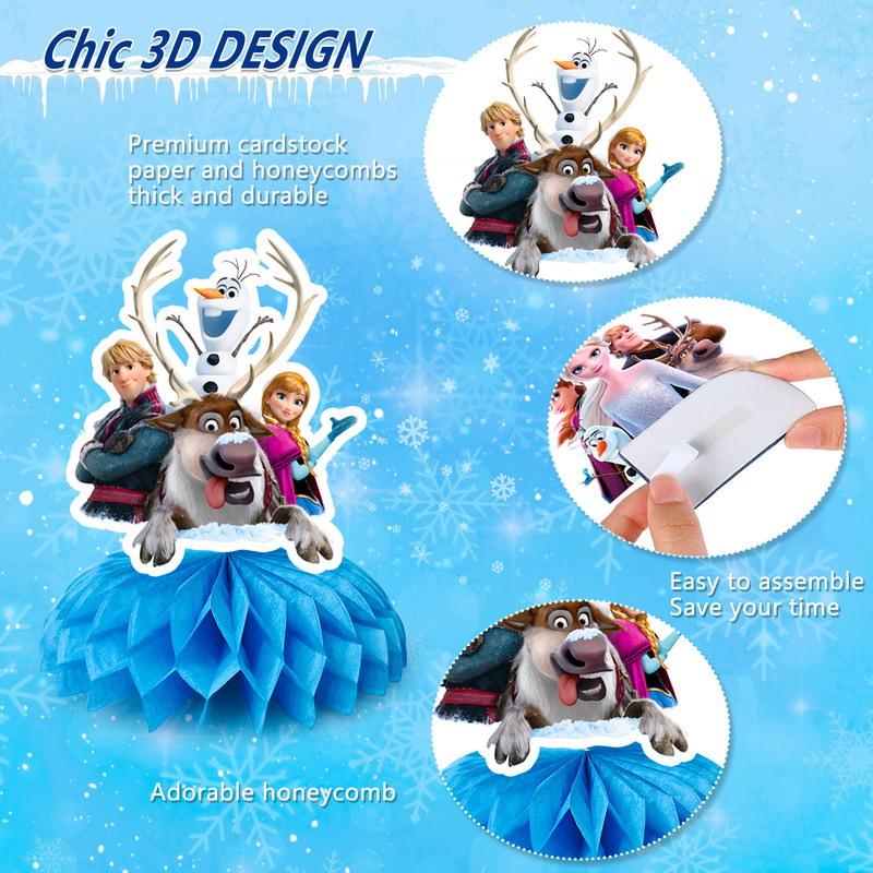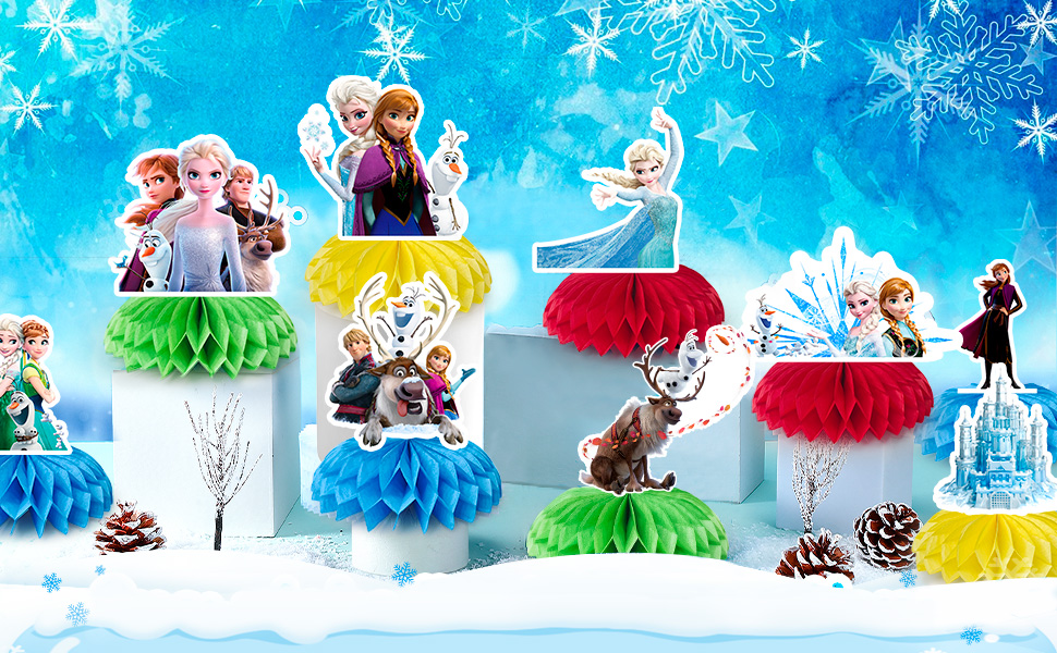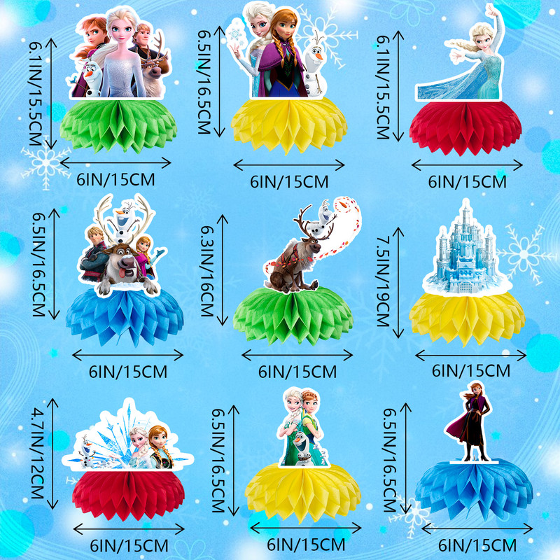 Featuring 9 different pattern designs, frozen party centerpieces are an integral part of olaf birthday party decorations, creating a charming atmosphere for your frozen birthday party.