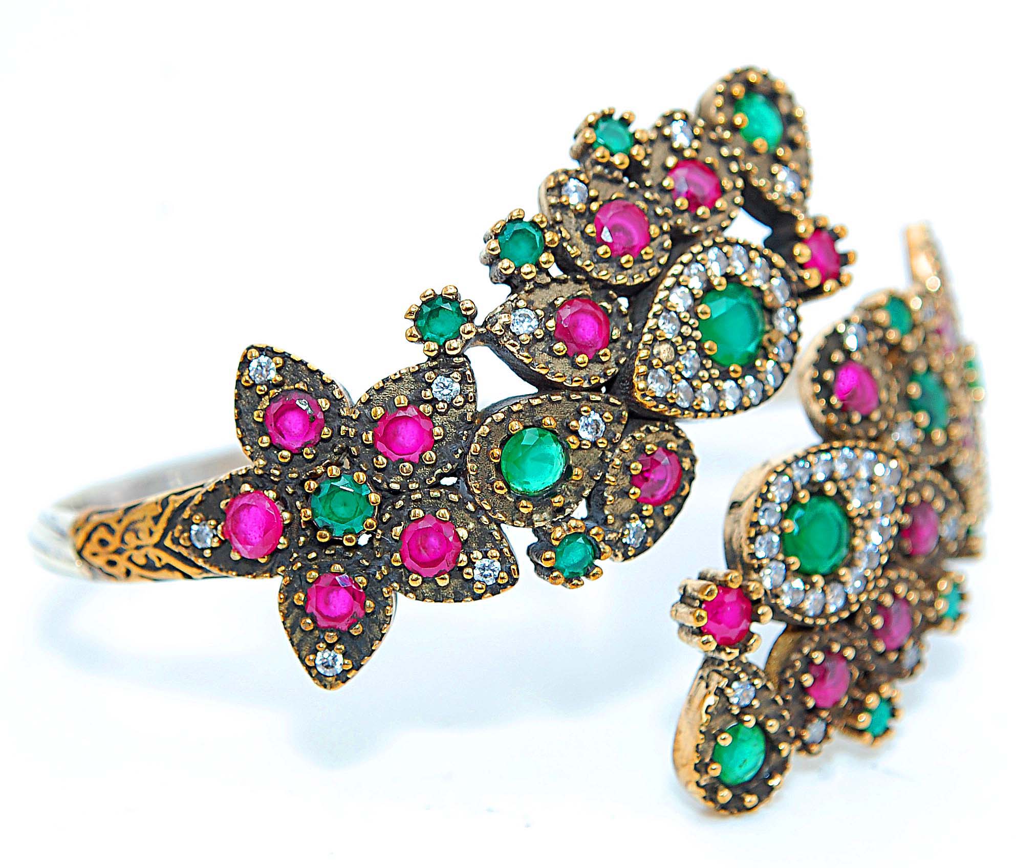 Gemstone : TREATED RUBY, emerald & WHITE TOPAZ