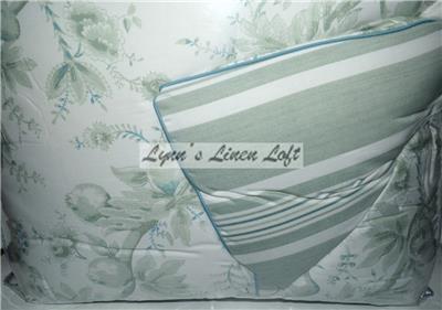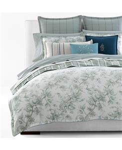 Add a soft, romantic flair to your bedroom décor with this Lauren Ralph Lauren Julianne Toile Reversible Comforter Set. The lovely bedding is graced with dreamy toile in sage green with peacock blue accents. Reverses to wide ticking stripes mixed with softer shirting stripes and tonal plaid.