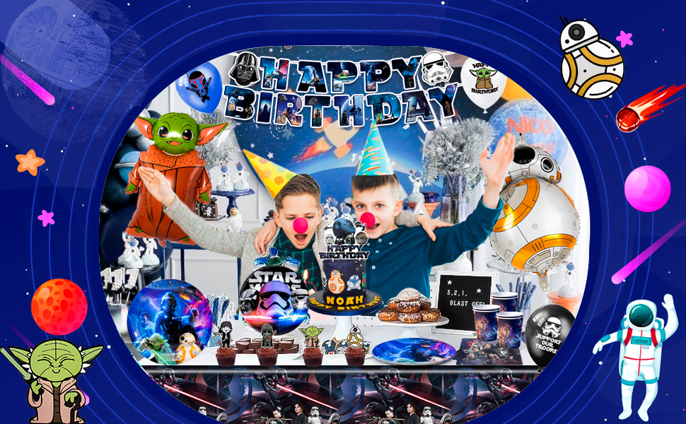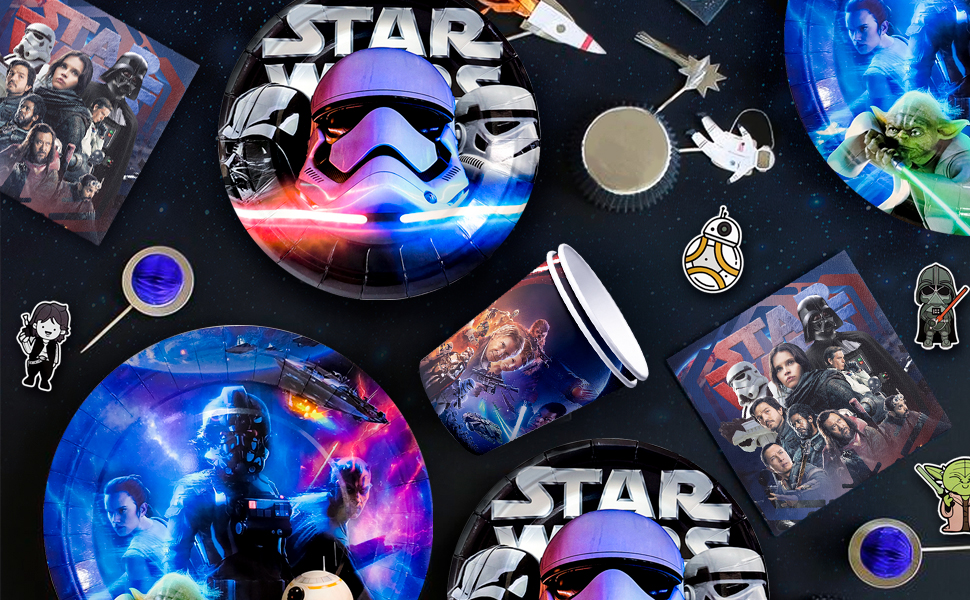 Our star war party supplies not only include star wars decorations, but also come with star wars plate, star wars party napkins, and other star wars birthday tableware, and just one set is enough to hold a perfect star wars birthday party for your children or friends.