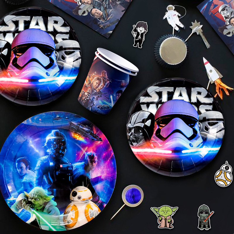 The pattern printing of this star wars themed party decorations and star wars party tableware is clear and lifelike, including aliens, space, and darth vader, which can make your guests feel like they are in the space of star wars.
