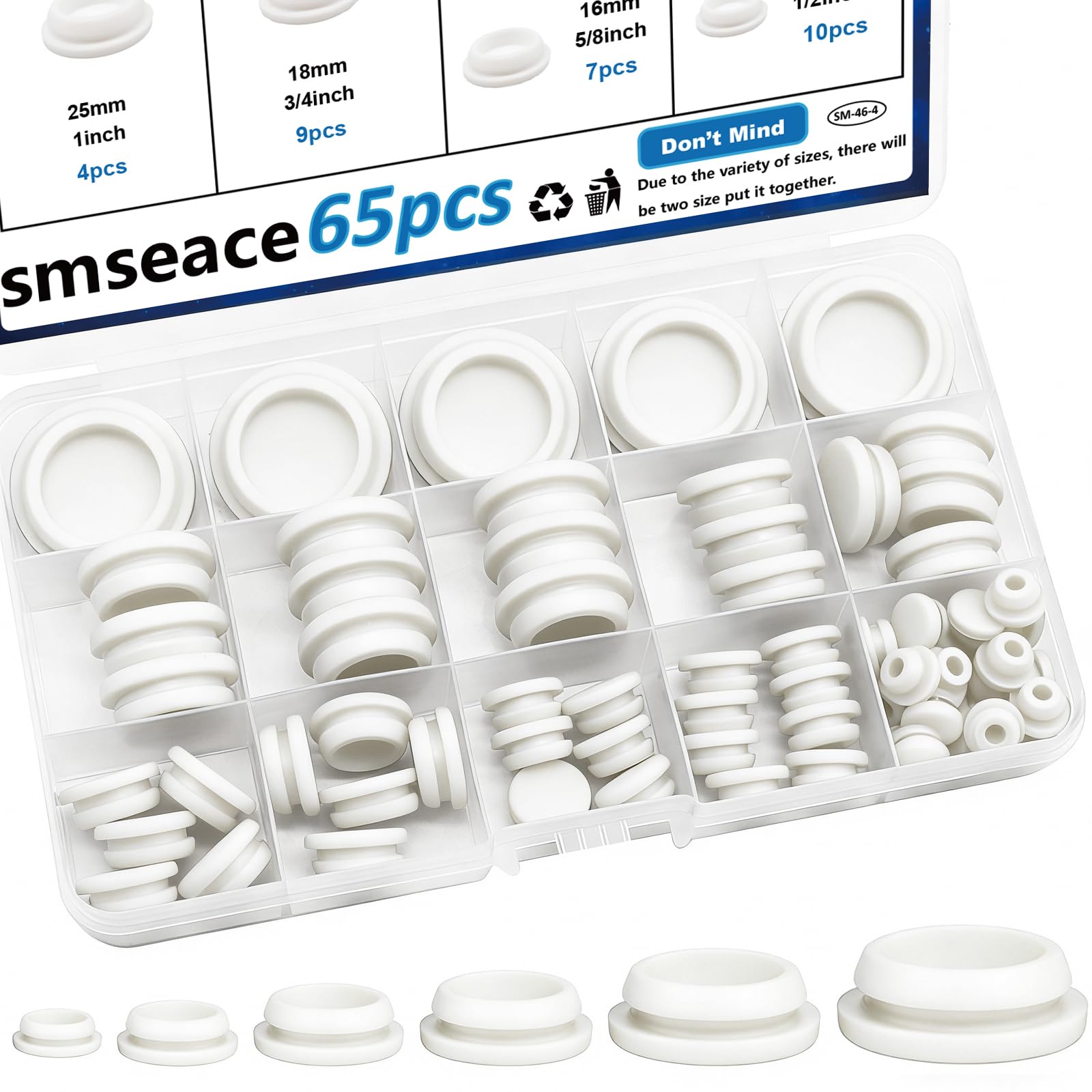 Assorted Sizes for Every Need: This set includes 130pcs 8 different sizes of white rubber hole plugs, carefully organized in a plastic box with colorful size labels for easy identification. You'll always have the right size on hand for any project
