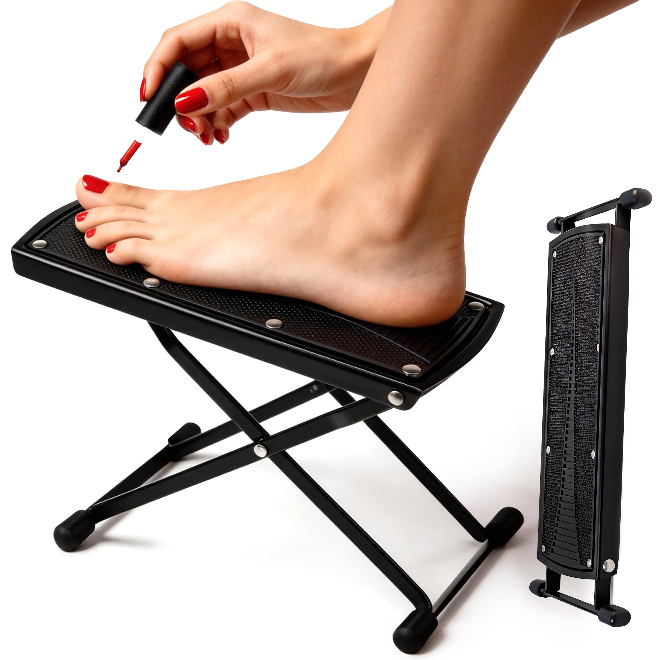 WIDELY APPLICATIONS: The pedicure stand has a comfortable upward tilt. It's convenient for personal care, pedicure treatment, and toenail art. You can also use it as shower stool for shaving legs, at home pedicure assistant , pedicure stools for nail tech , Foot rest for under desk at work, Guitar foot rest etc.