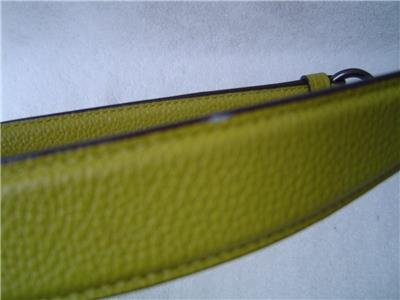 INSIDE HAS CHARTREUSE GREEN LINING, ONE ZIP POCKET AND ONE MULTI-USE POCKET