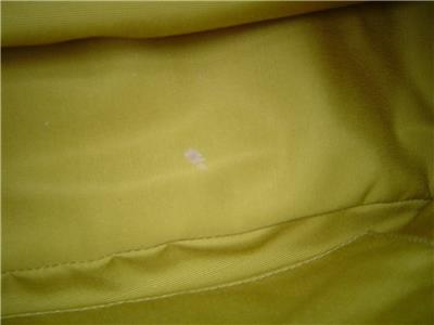 THIS IS A USED BAG IN EXCELLENT CONDITION. SHOWS MINIMAL NORMAL WEAR. HANDLE HAS A SMALL WHITE MARK. INSIDE LINING HAS A SPOT. THIS IS IN LIKE NEW CONDITION! NO UNUSUAL SMELLS OR ODORS. NO RIPS OR TEARS.