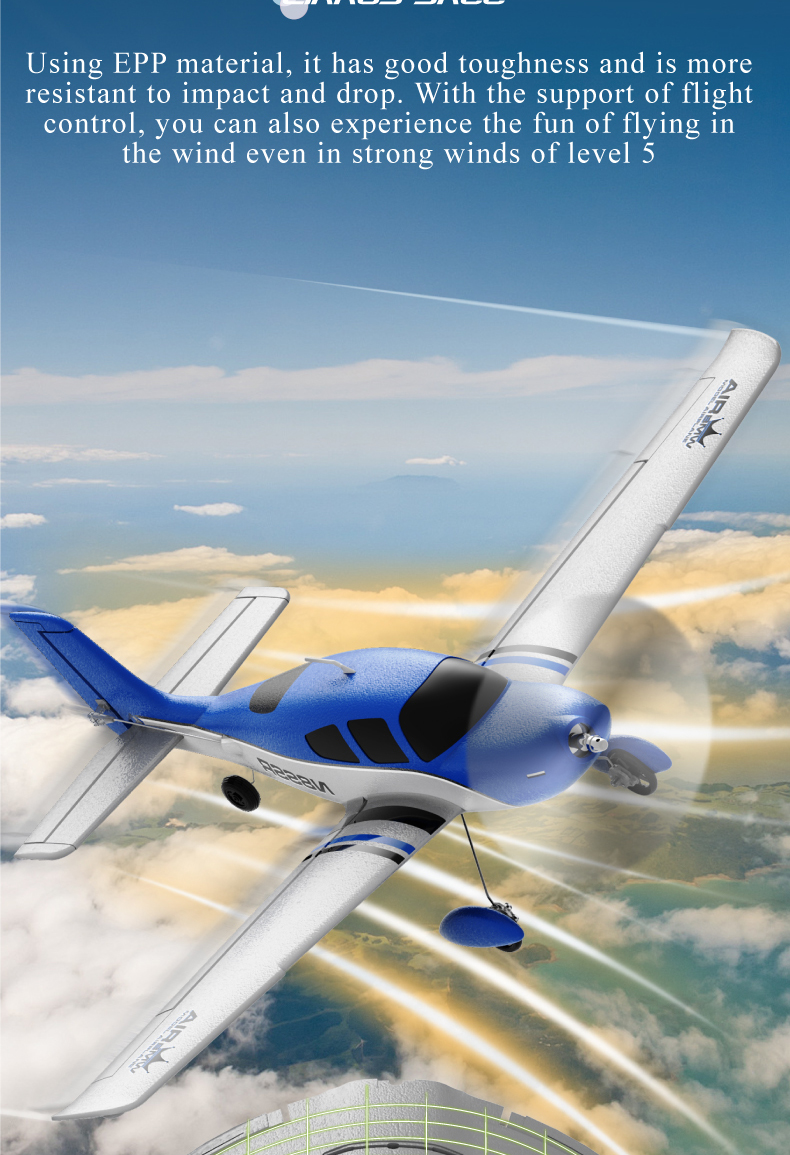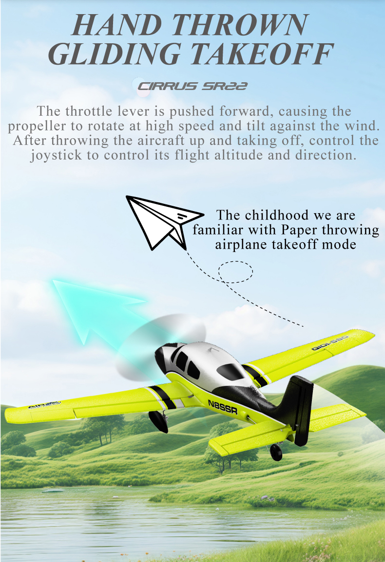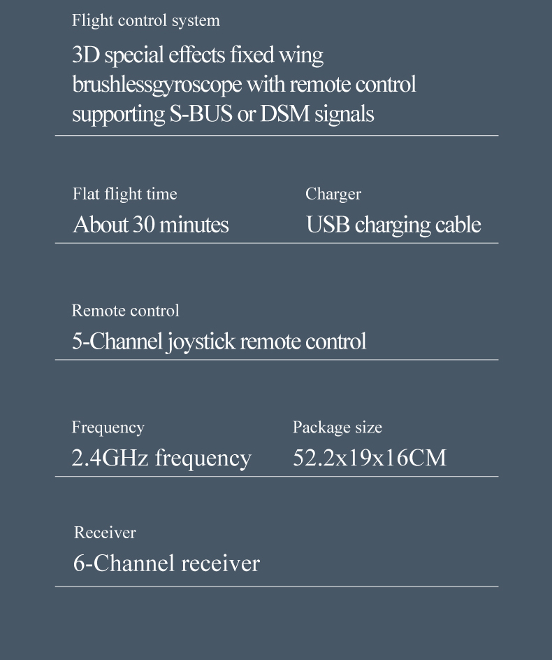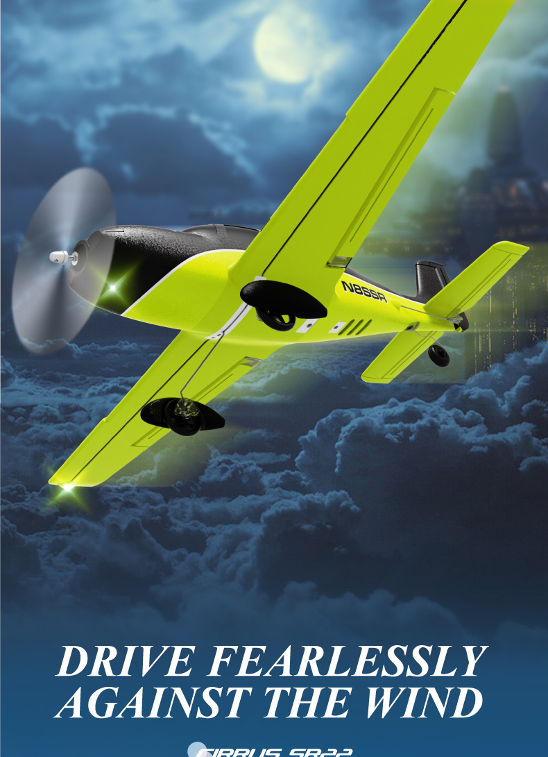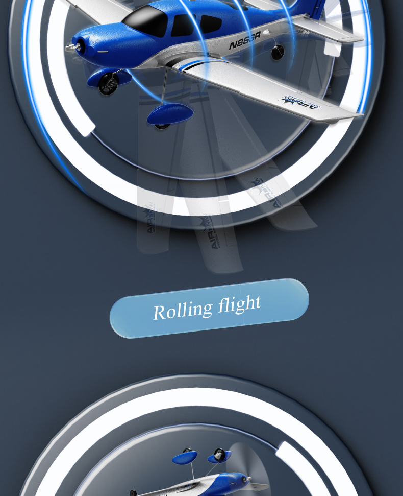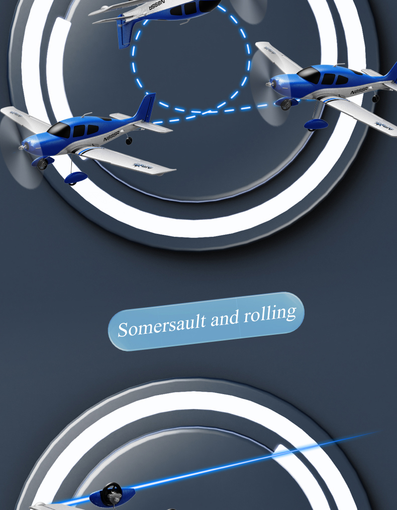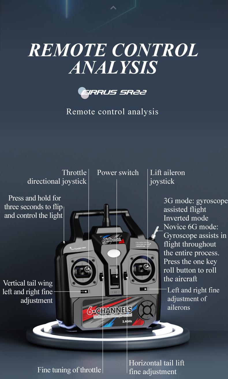 Auto-balancing, 4-channel gliding remote control aircraft (ascend, descend, turn left, turn right, left yaw, right yaw, forward roll, light control)