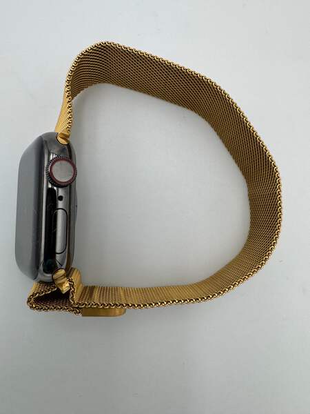 This Apple Watch Series 7 Cellular A2475 (2021) offers GPS + Cellular connectivity in a 41mm stainless steel case with a Sapphire Crystal finish. It includes a Gold Milanese Loop, and the watch is listed with an unlocked carrier status. The unit has been tested for Bluetooth and touchscreen functionality.