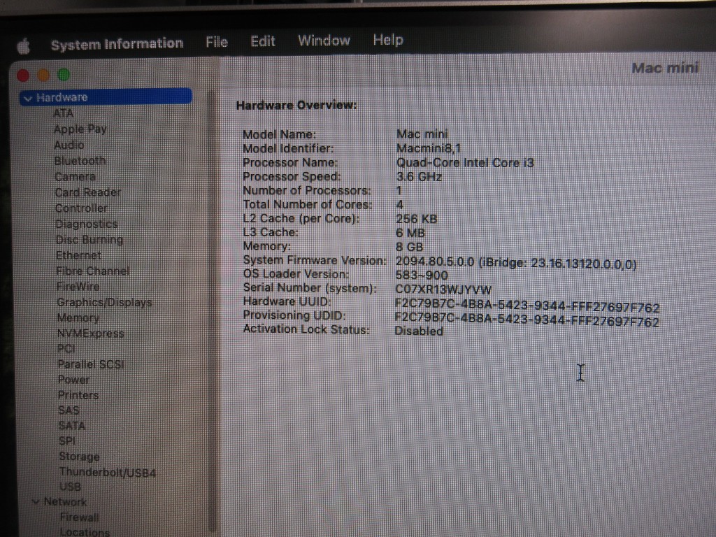 | | Model: | Mac mini Late 2018 |