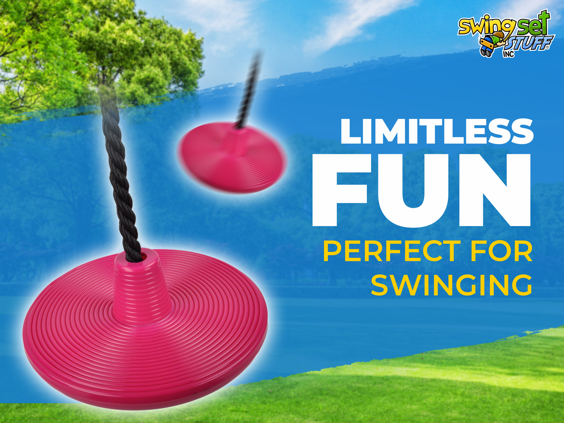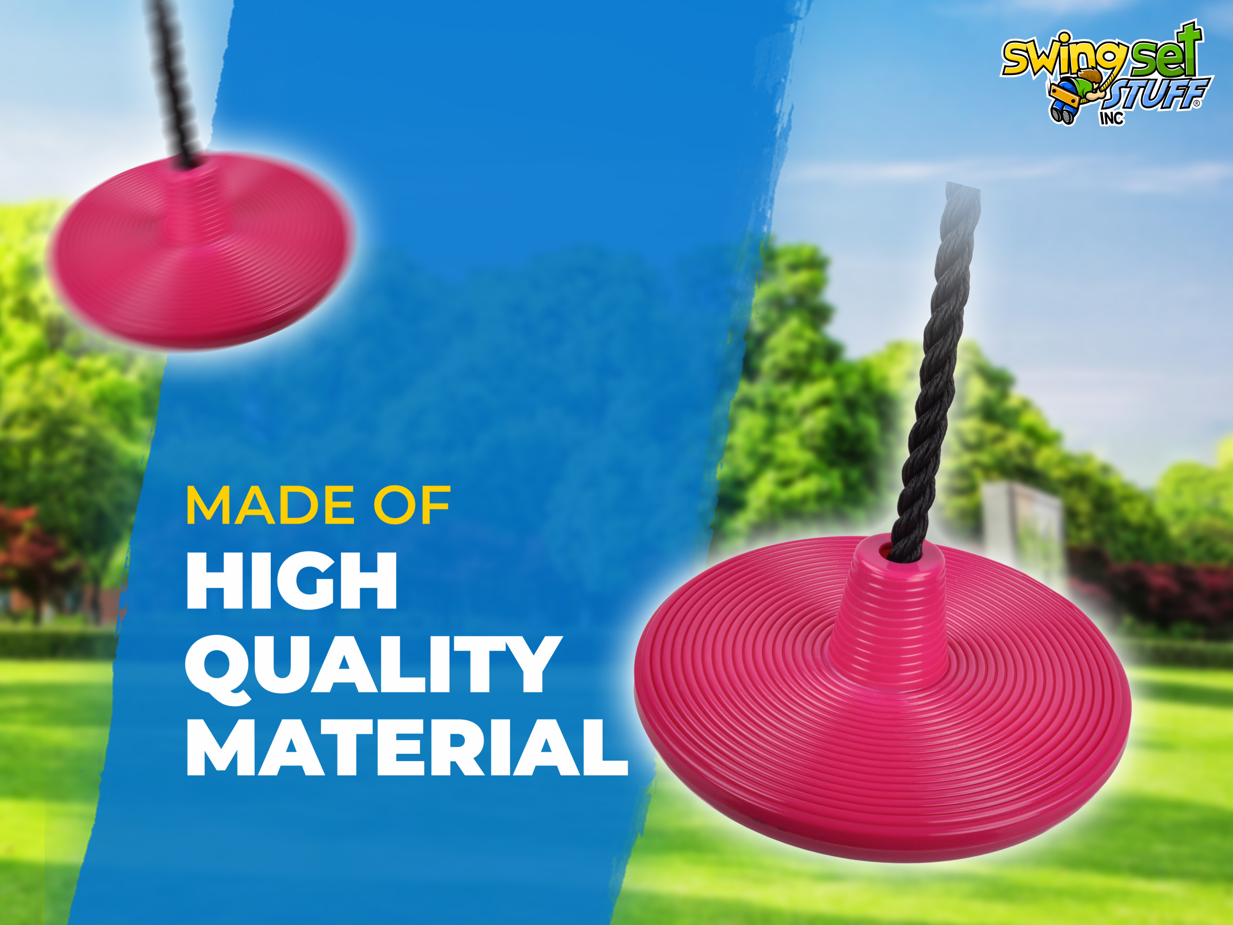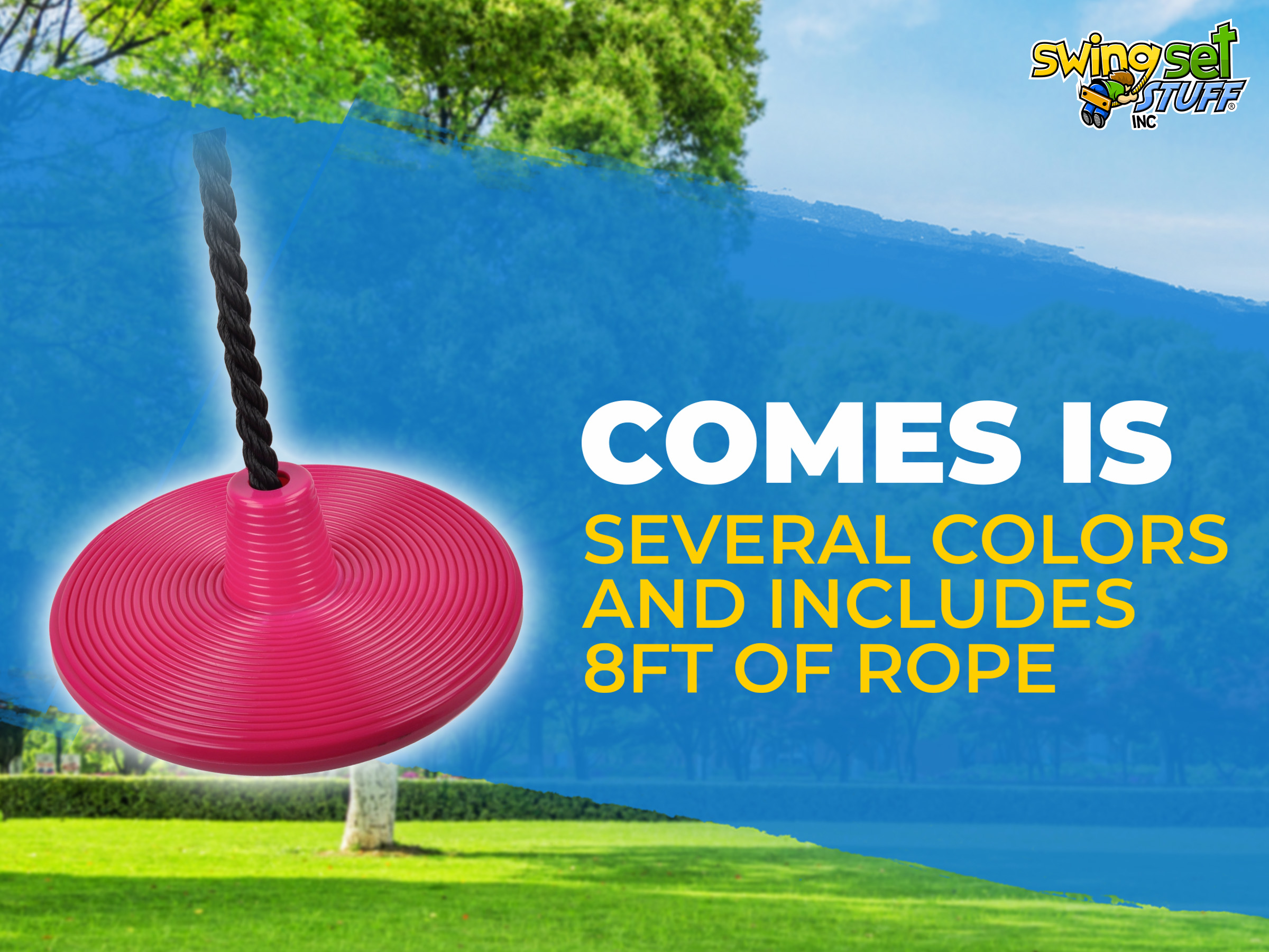 This is a cyclone swing seat molded from high density polyethylene that comes with 8 foot of rope. The rope is 3/4" in diameter and the seat is 11 3/4" in diameter.