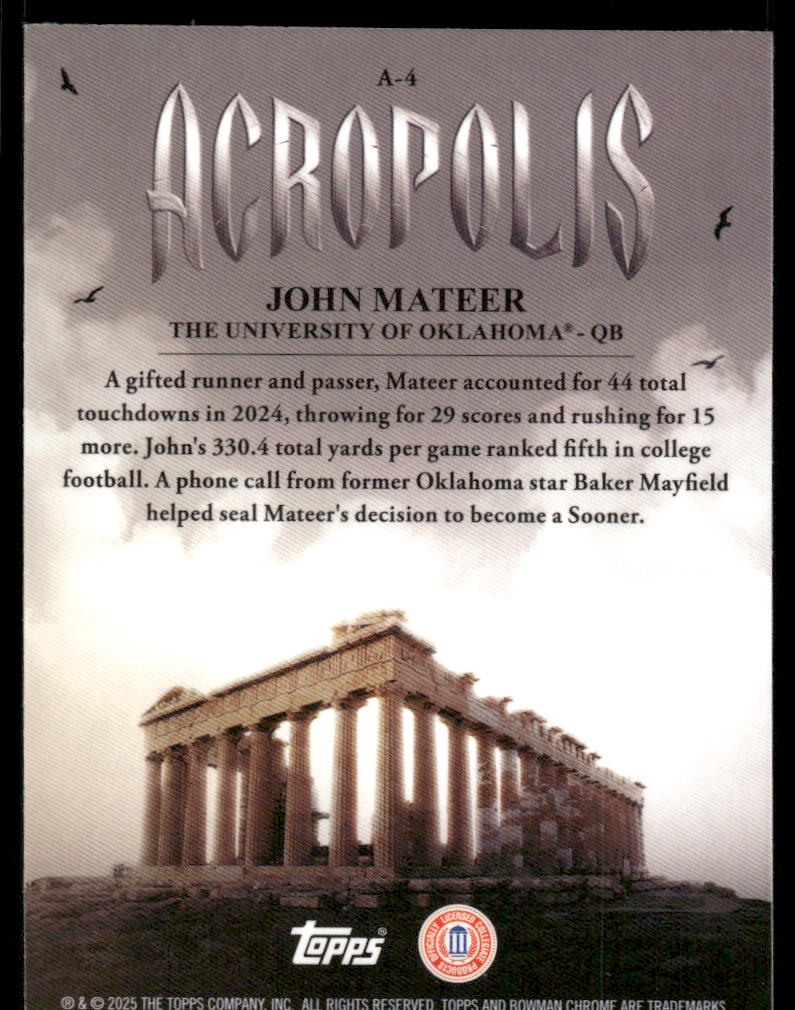 2025 Bowman Chrome University Acropolis #A4 John Mateer - FB
