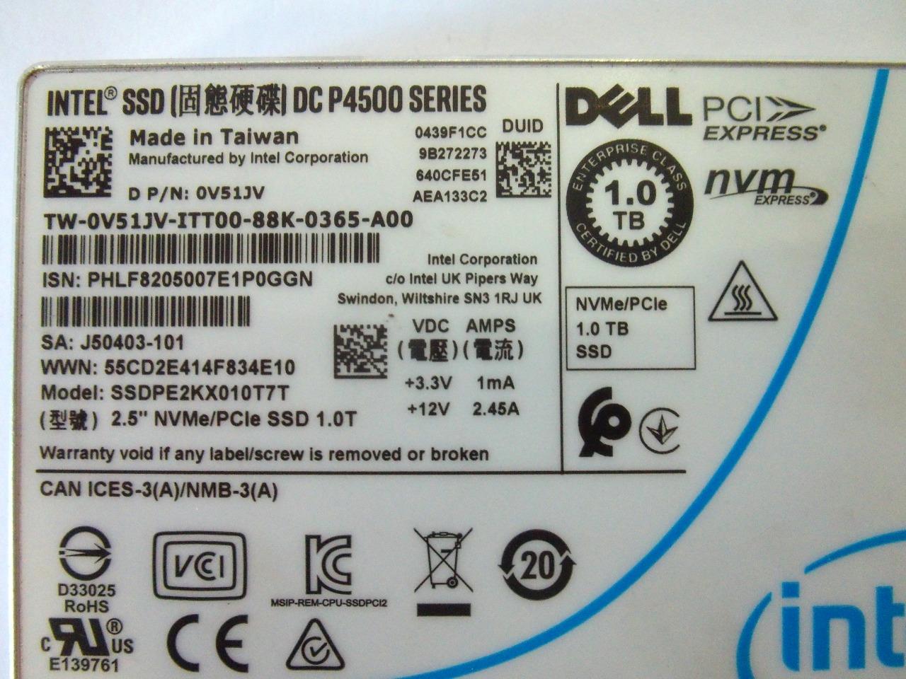Dell Intel DC P4500 Series 1TB NVME/PCIe 2.5'' SSD 0V51JV SSDPE2KX010T7T 0V51JV