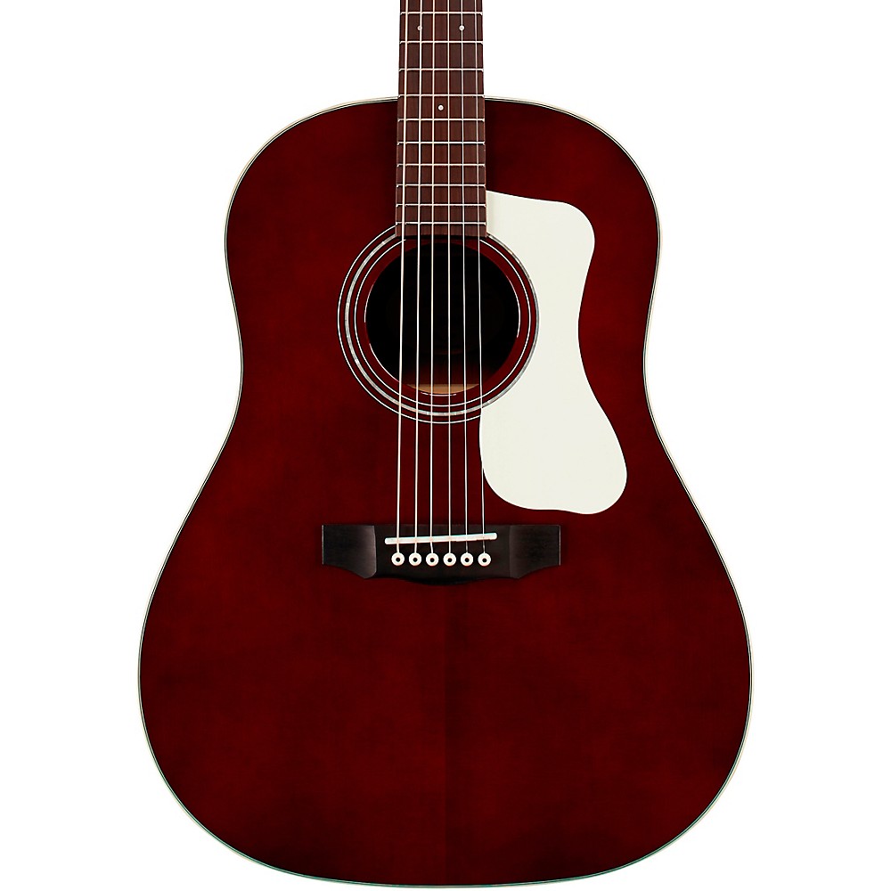 Guild's DS-240 Memoir is a retro-looking slope shoulder dreadnought acoustic guitar built with a solid spruce top, and mahogany back and sides with a sleek, gloss finish. The vintage-inspired mother-of-pearl rosette and Guild Script Logo pay homage to the classic styling of instruments from the 1920s. The DS-240 Memoir's sound is instantly warm, clear and inviting—almost as if its tone has been perfected over years of fireside strumming and family music-making.