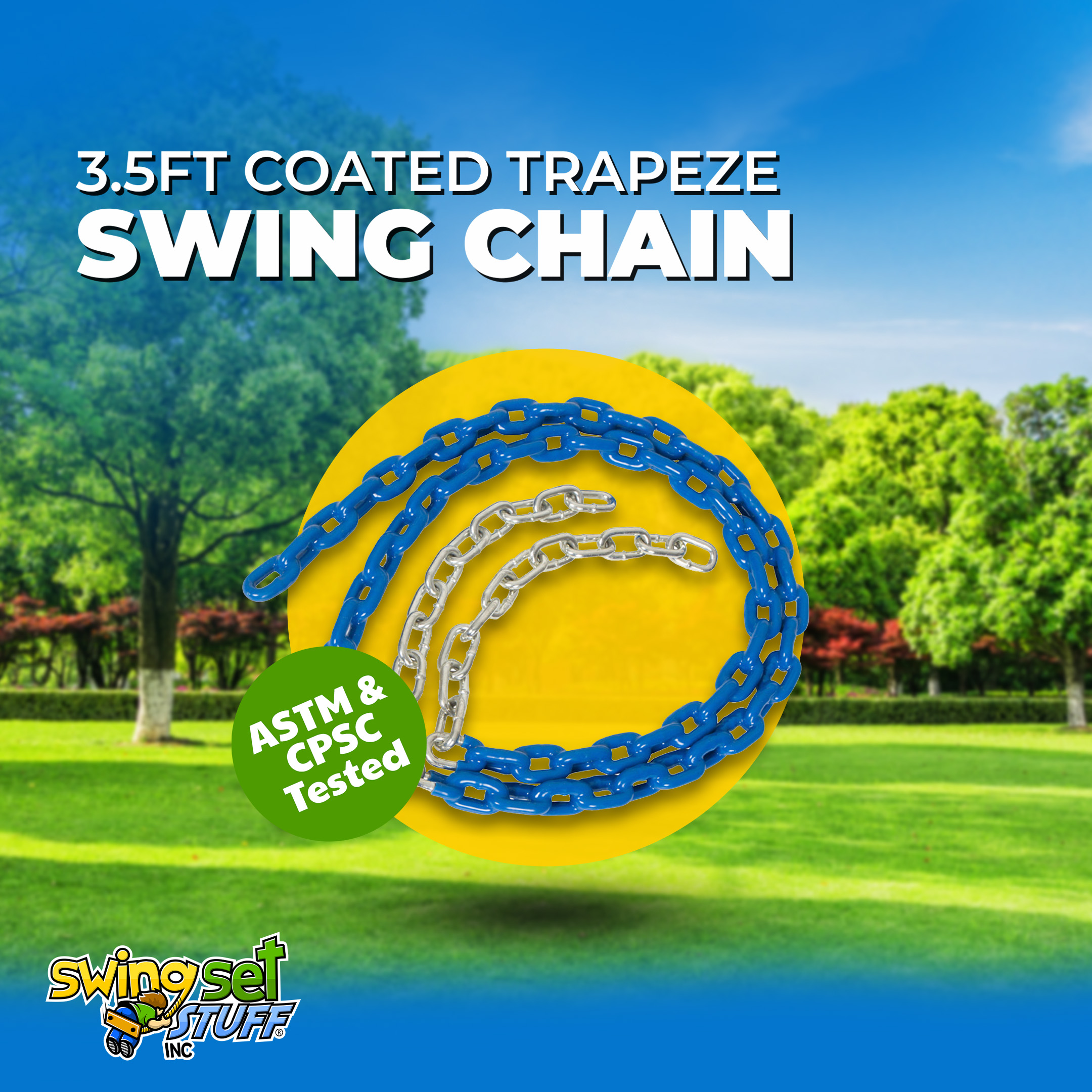 This is for a pair 3 1/2FT coated blue trapeze swing chain. The coating covers 2 ft. 6 in. of the chain. Please visit our Ebay store for additional colors and products. Chain is 3/16" in diameter.