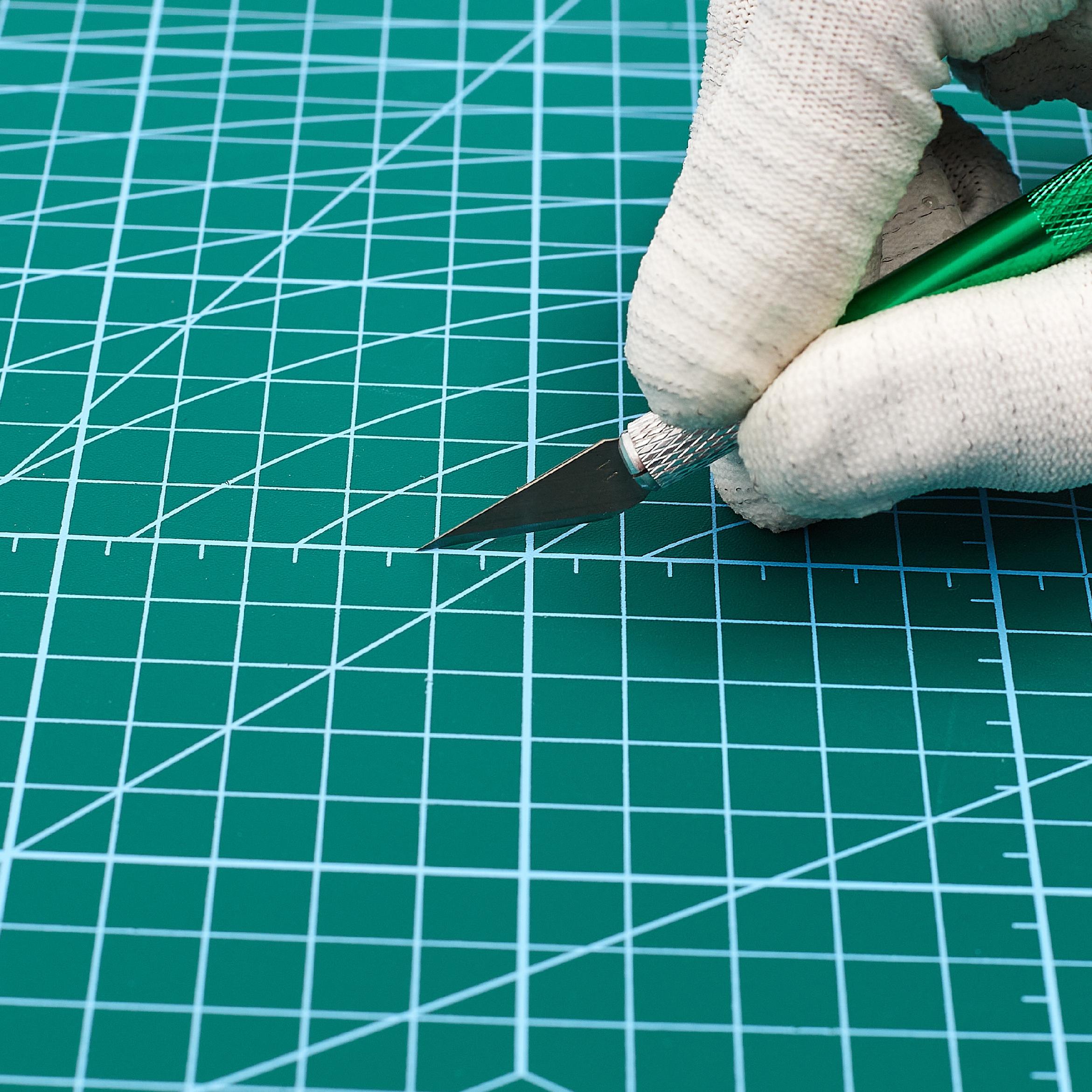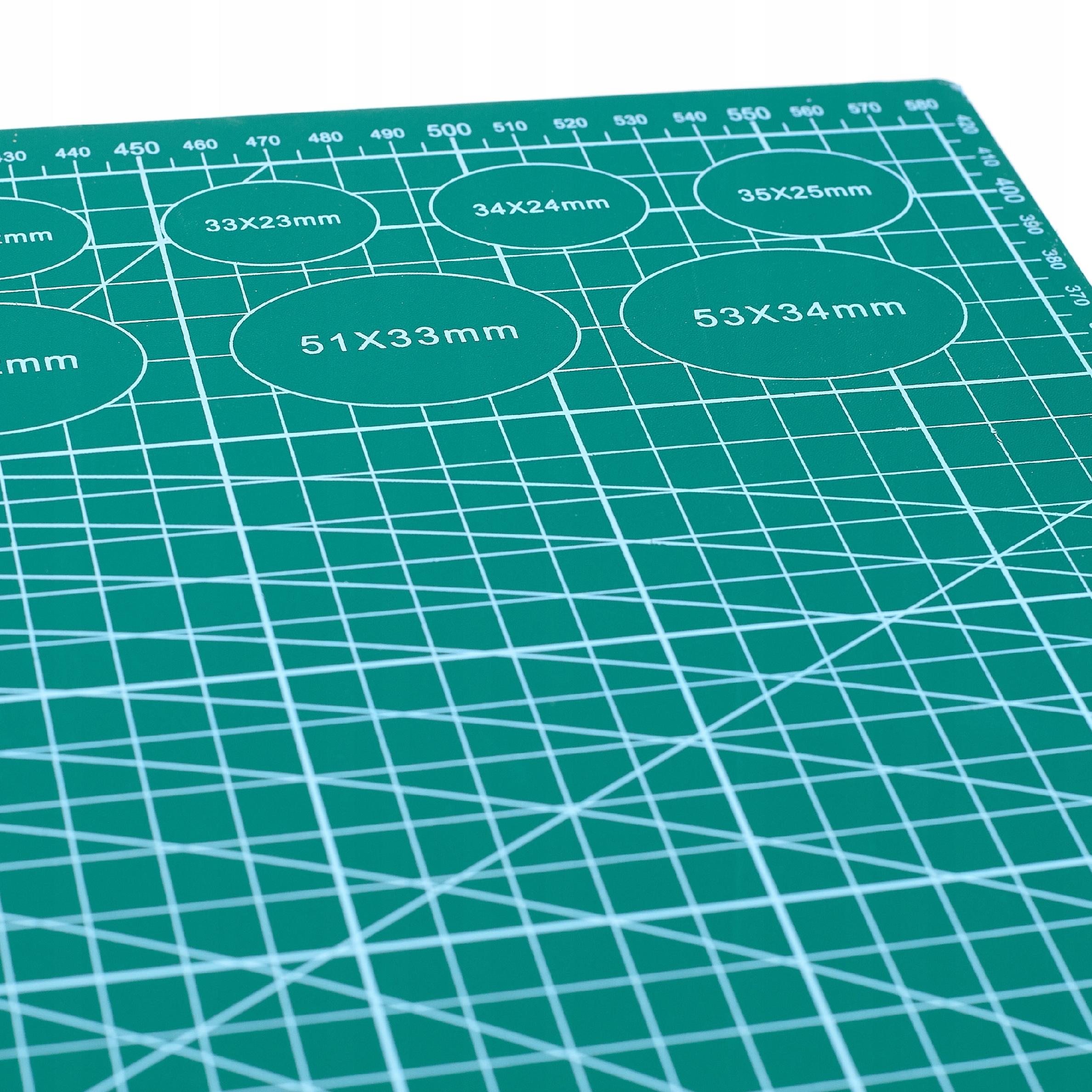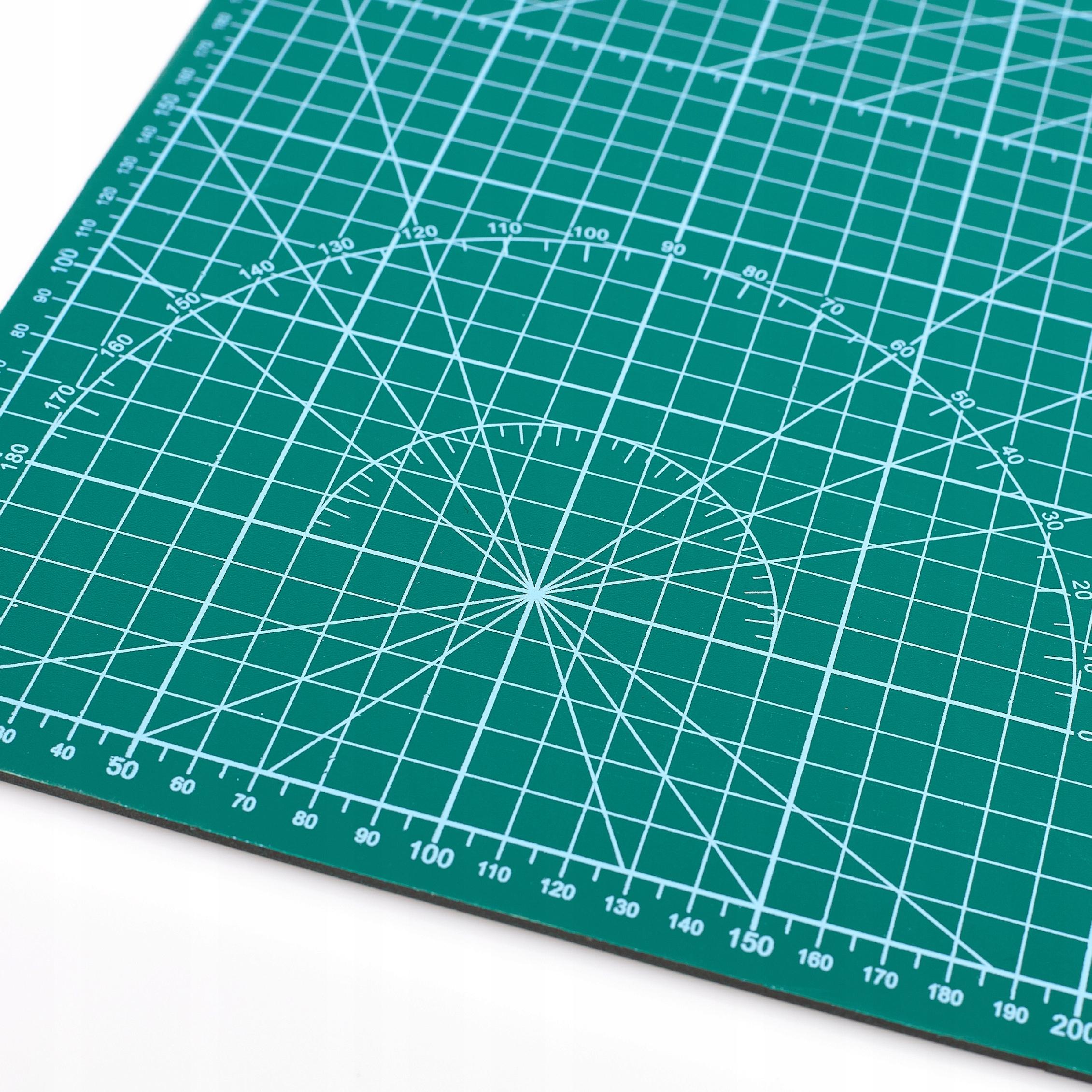 Mata wykonana ze specjalnego materiału, który wskazuje właściwości samoregenerujące - po nacięciu ostrzem cześciowo regeneruje się. Po nacięciu mata pozostaje gładka. Mata dwustronna - nadrukowano na niej podziałkę, linie pomocnicze oraz figury przydatne podczas pracy, każda ze stron posiada inny nadruk. Mata idealnie sprawdzi się jako podkładka pod stół roboczy, czy biurko, można ją wykorzystać podczas prac modelarskich czy biurowych. Po macie można ciąć skalpelem, nożem krązkowym czy segmentowym.