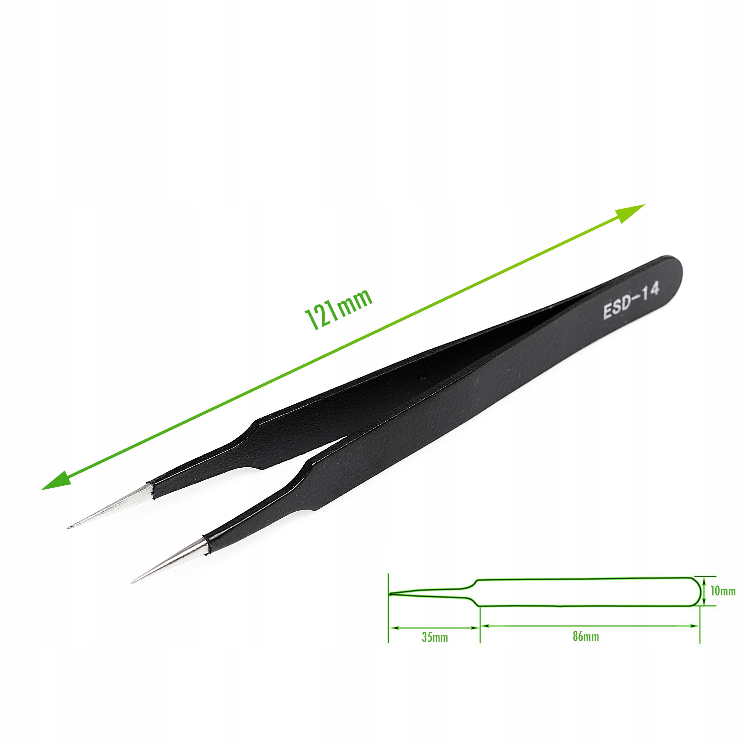 ✅ Precyzyjna pęseta 121mm ESD-14 z ostrym grotem