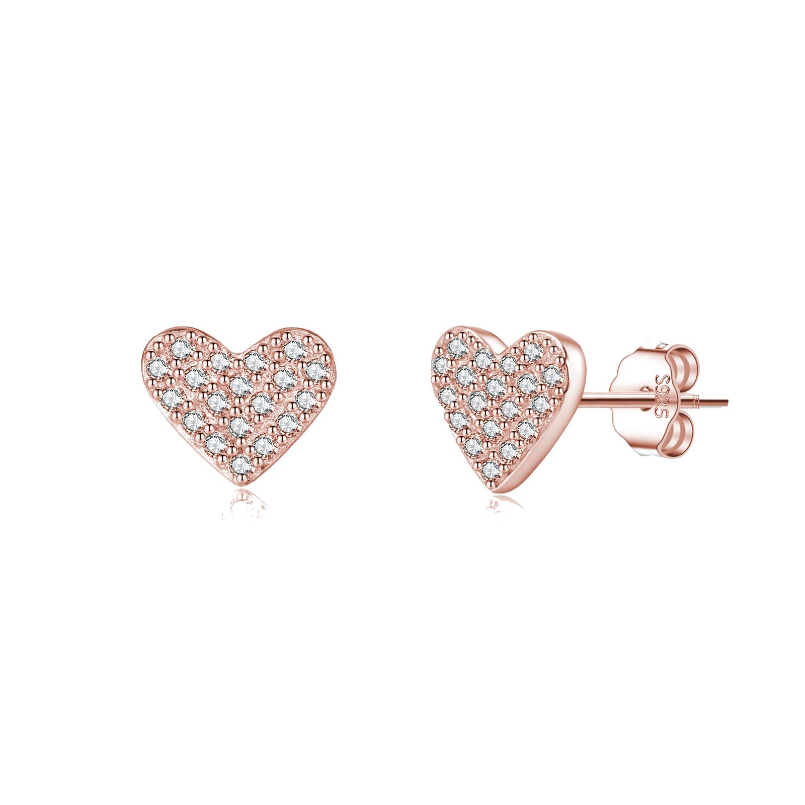 925 Sterling Silber CZ Herz Ohrstecker für Damen süße Liebe Herz Ohrringe Ohrstecker (C-Rose Gold)