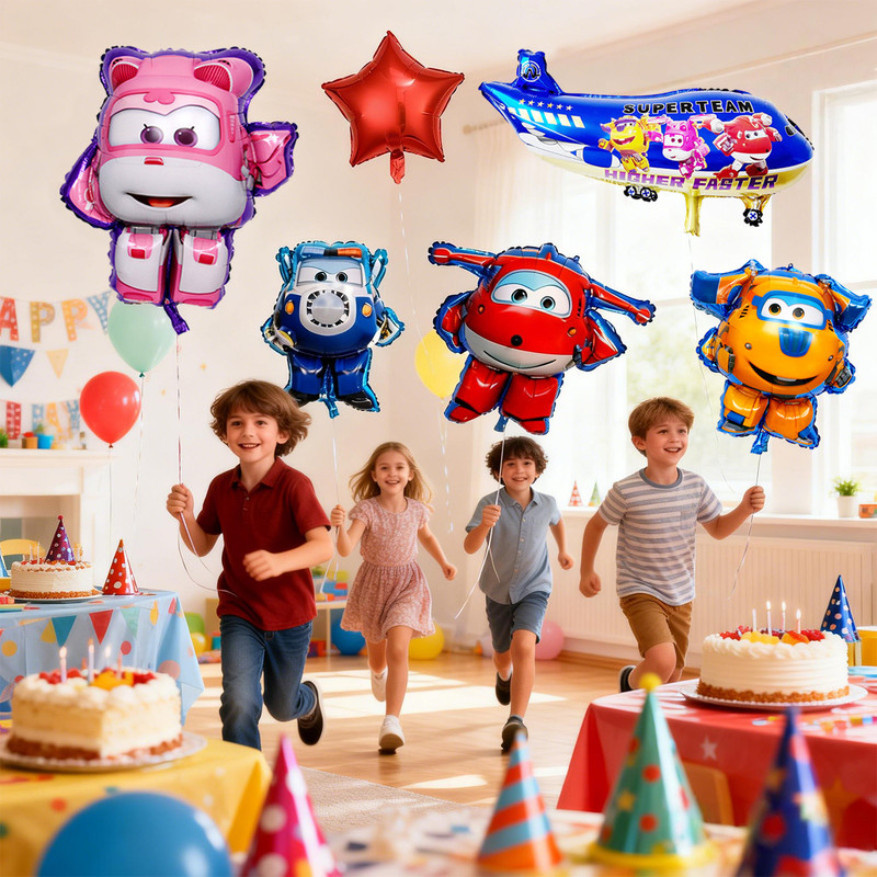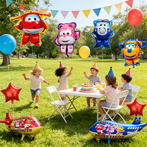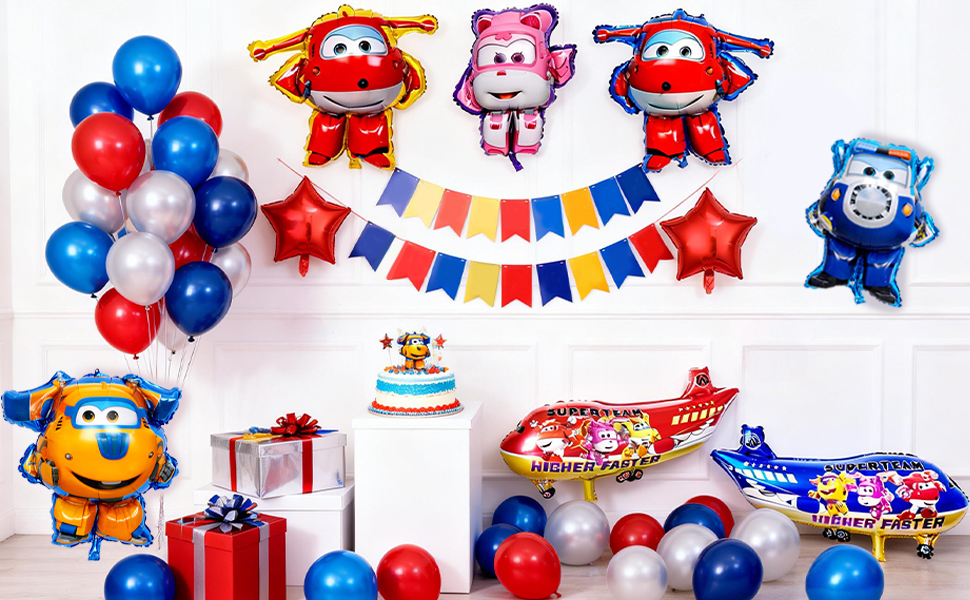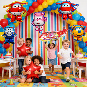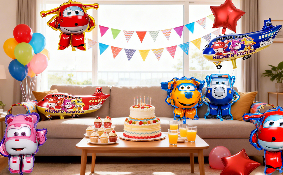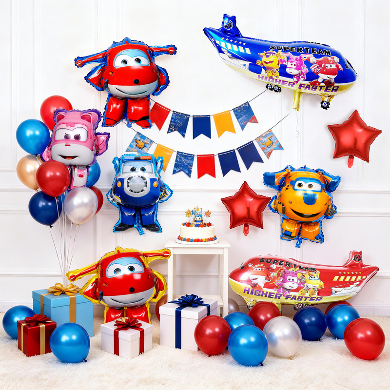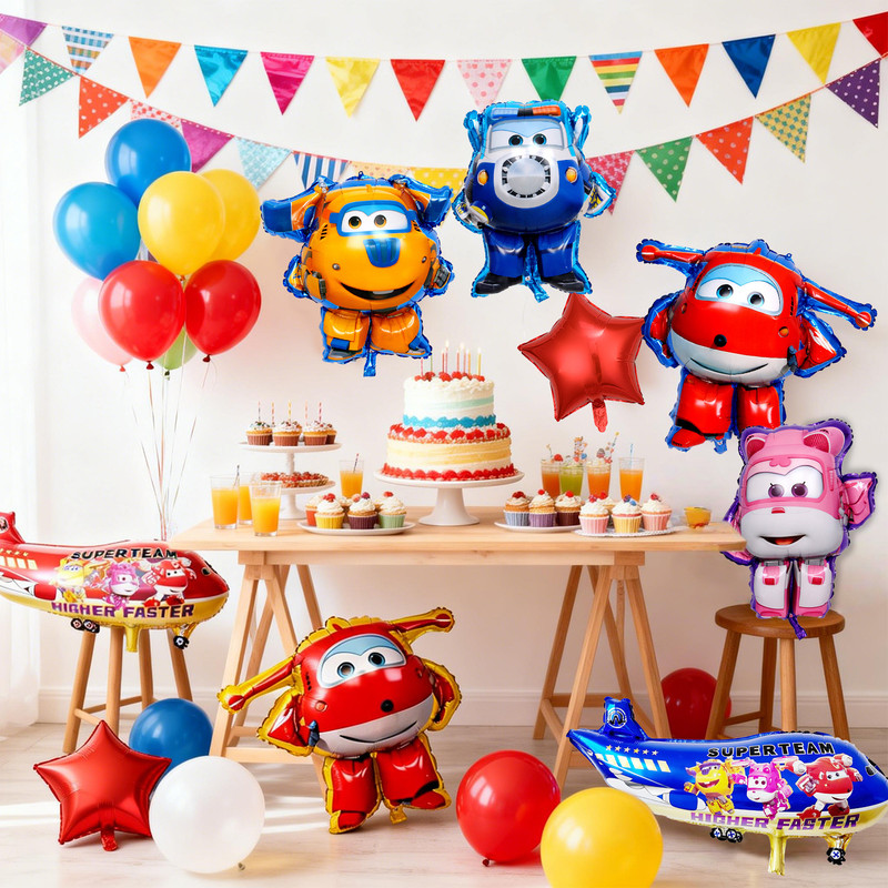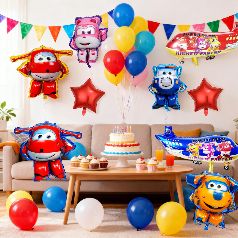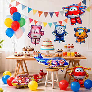You can use these super wings kids balloons to decorate super wings birthday for boys, increase fun interaction between you and your child, and add a joyful atmosphere to your super wings themed birthday party.
