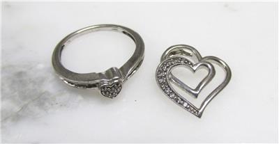 Women's Diamond Sterling Silver Ring & Heart Pendant