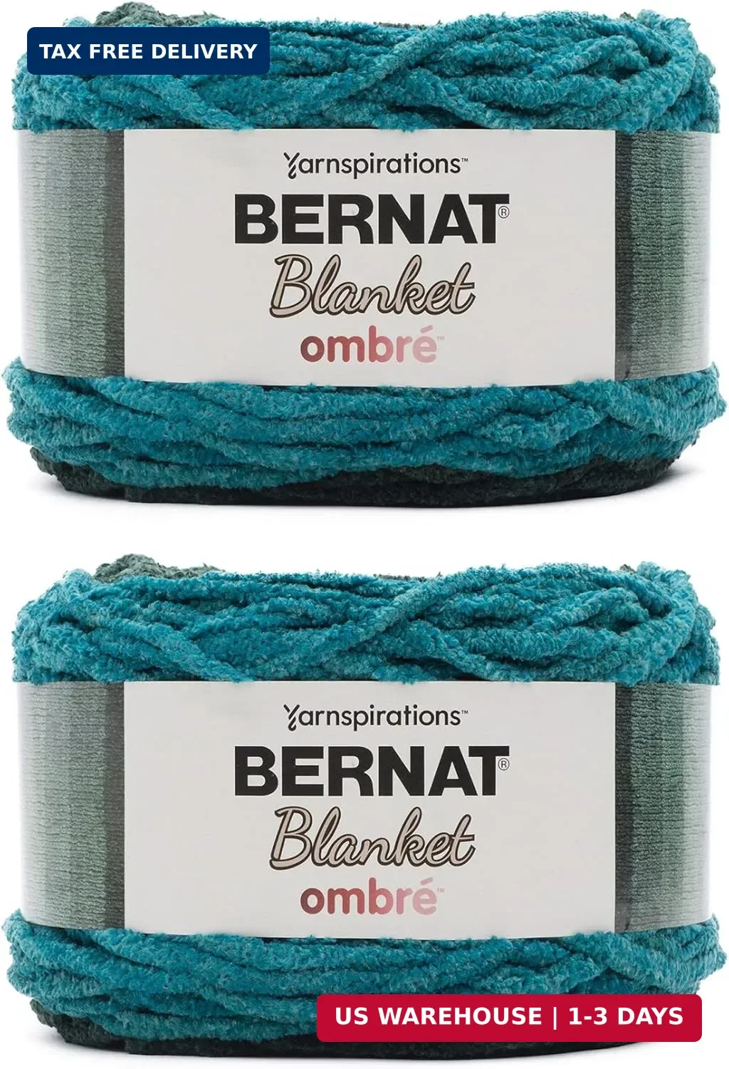 Bernat Blanket Ombre Ocean Teal Ombre Yarn - 2 Pack of 300g/10.5oz - Polyester -