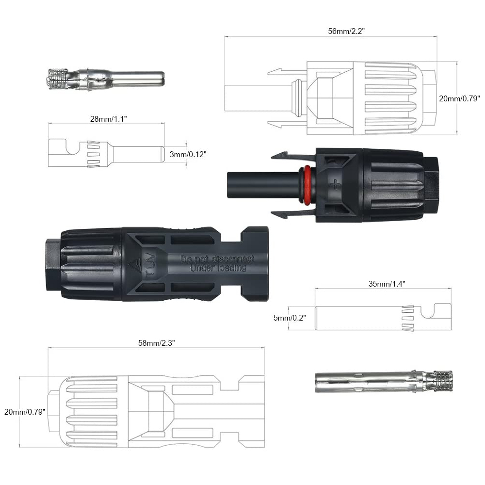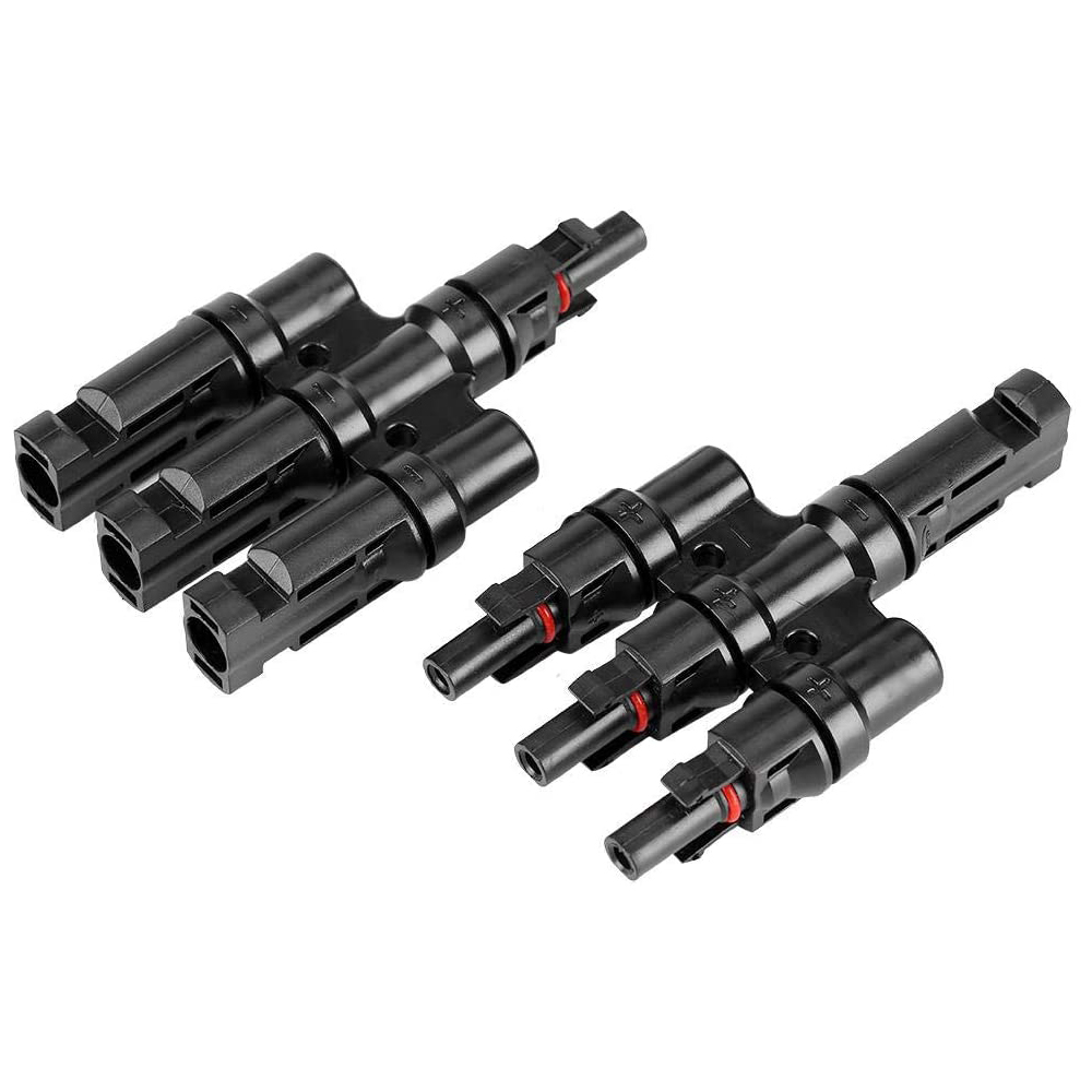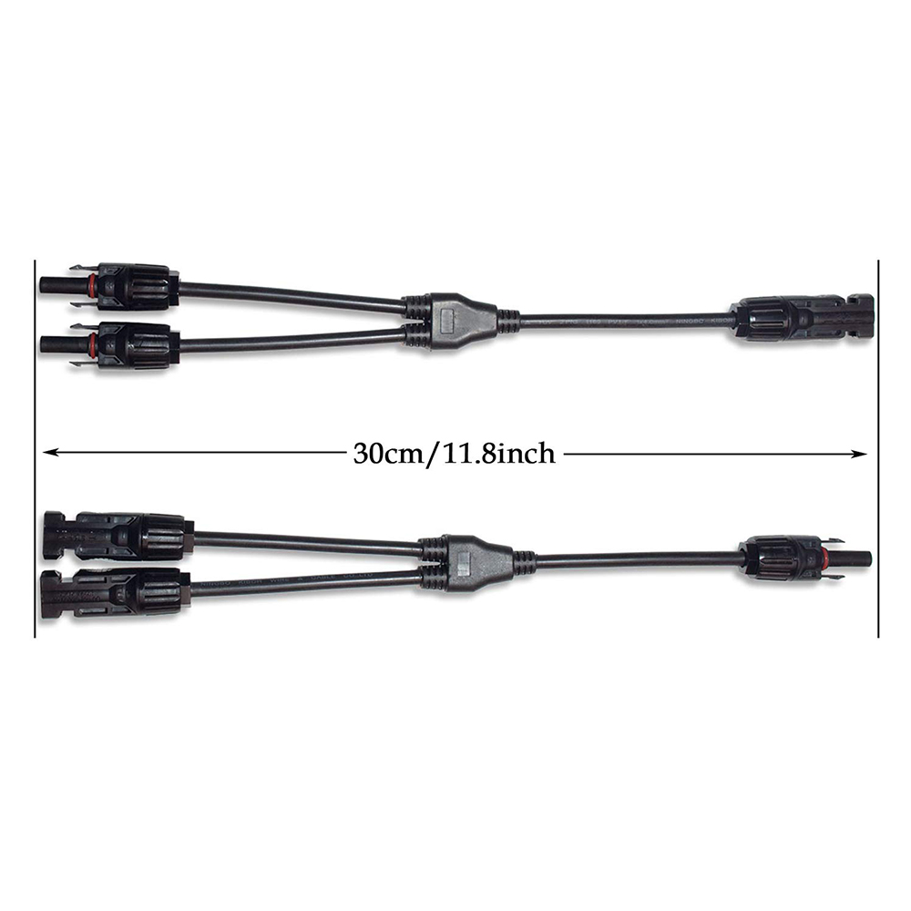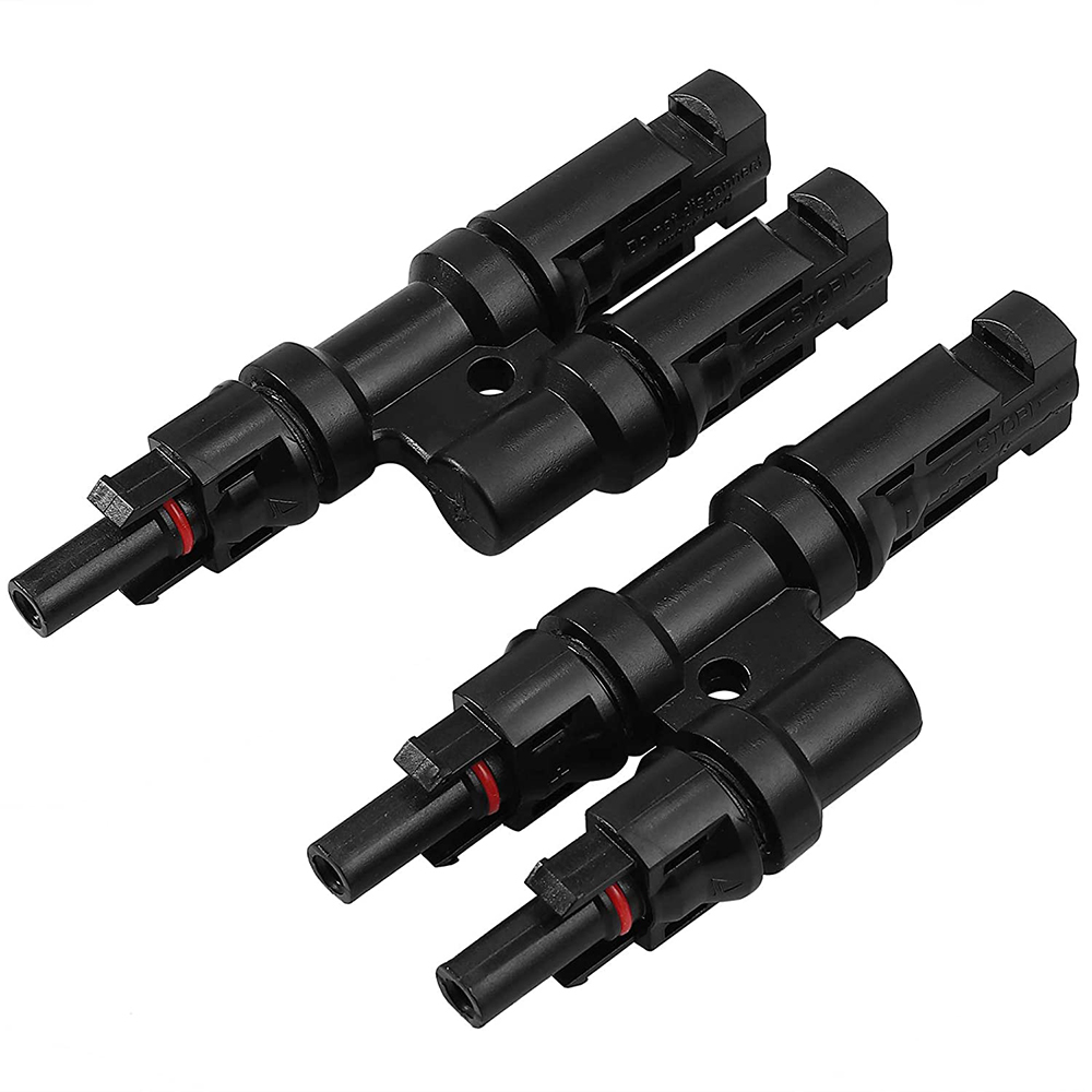 Produktmerkmale: Parallele Y / T-Abzweigverbinder - 1 Stecker an 1/2/3/4 Buchse (M / FFFF) und 1 Buchse an 1/2/3/4 Stecker (F / MMMM). Doppelte Dichtringe für eine bessere Wasserdichtigkeit. Die Solarpanel-Steckverbinder sind mit PV-Kabeln mit unterschiedlichen Isolationsdurchmessern (10-14 AWG) kompatibel. Es kann in rauen Umgebungen wie Regen, starkem Wind und Schnee eingesetzt werden Hervorragende Alterungsbeständigkeit und UV-Beständigkeit. Versiegeltes und staubdichtes Design. Belastbarkeit mit großem Strom und hoher Spannung. Extra hohe und niedrige Temperatur und Feuerfestigkeit.
