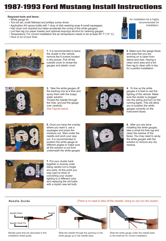 Our white gauges are an overlay style and install over your factory OEM gauges. They are manufactured this way to allow an easier installation without needle removal, re-wiring or without voiding your vehicle warranty. Application of the white gauges is comparable to the process of tinting windows, we highly recommend our gauge face installation kit for an error free install.