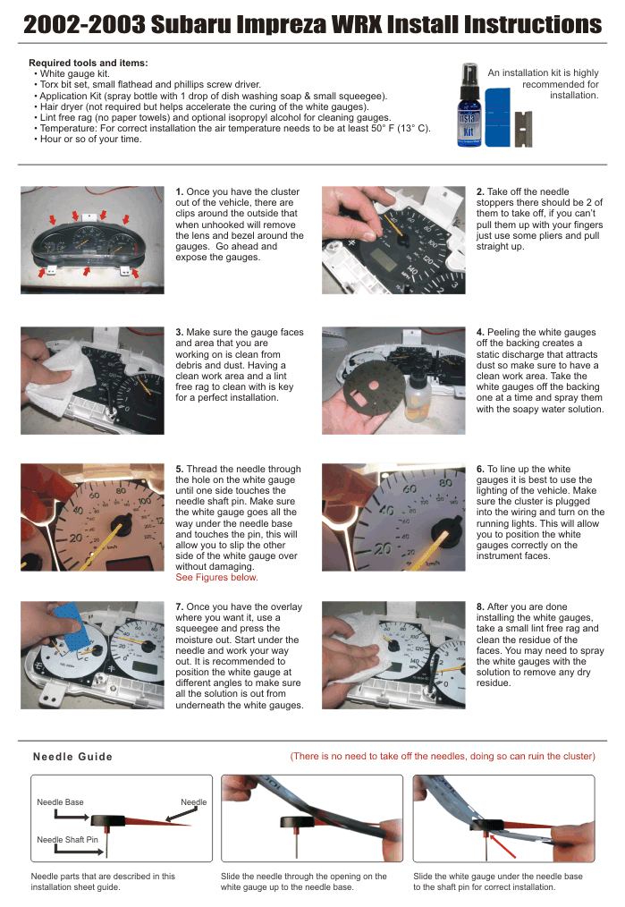 Our white gauges are an overlay style and install over your factory OEM gauges. They are manufactured this way to allow an easier installation without needle removal, re-wiring or without voiding your vehicle warranty. Application of the white gauges is comparable to the process of tinting windows, we highly recommend our gauge face installation kit for an error free install.