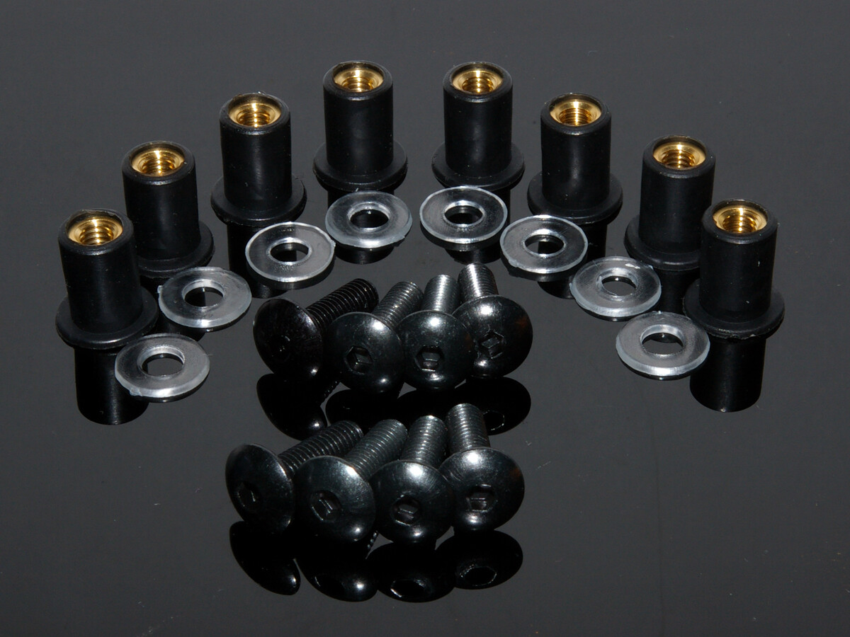 Sofort Kauf Alu-Schraubenset m. Gummimuttern f. Verkleidungen schwarz Fairing Screwset black