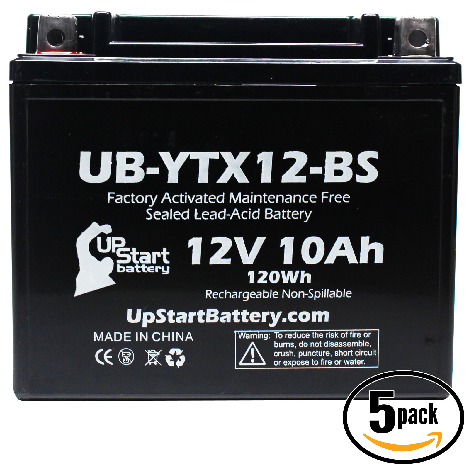 Genuine UpStart Battery replacement for 5-Pack UB-YTX12-BS Motorcycle Battery (12V, 10Ah). This 5-Pack UB-YTX12-BS Motorcycle Battery (12V, 10Ah) is compatible with the original.