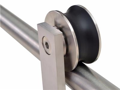 This hardware is for barn style wood sliding doors. It's made of stainless steel 304, can hold 200 lbs in weight and 35mm thick, and it's space saving. Takes minutes to assemble and install.