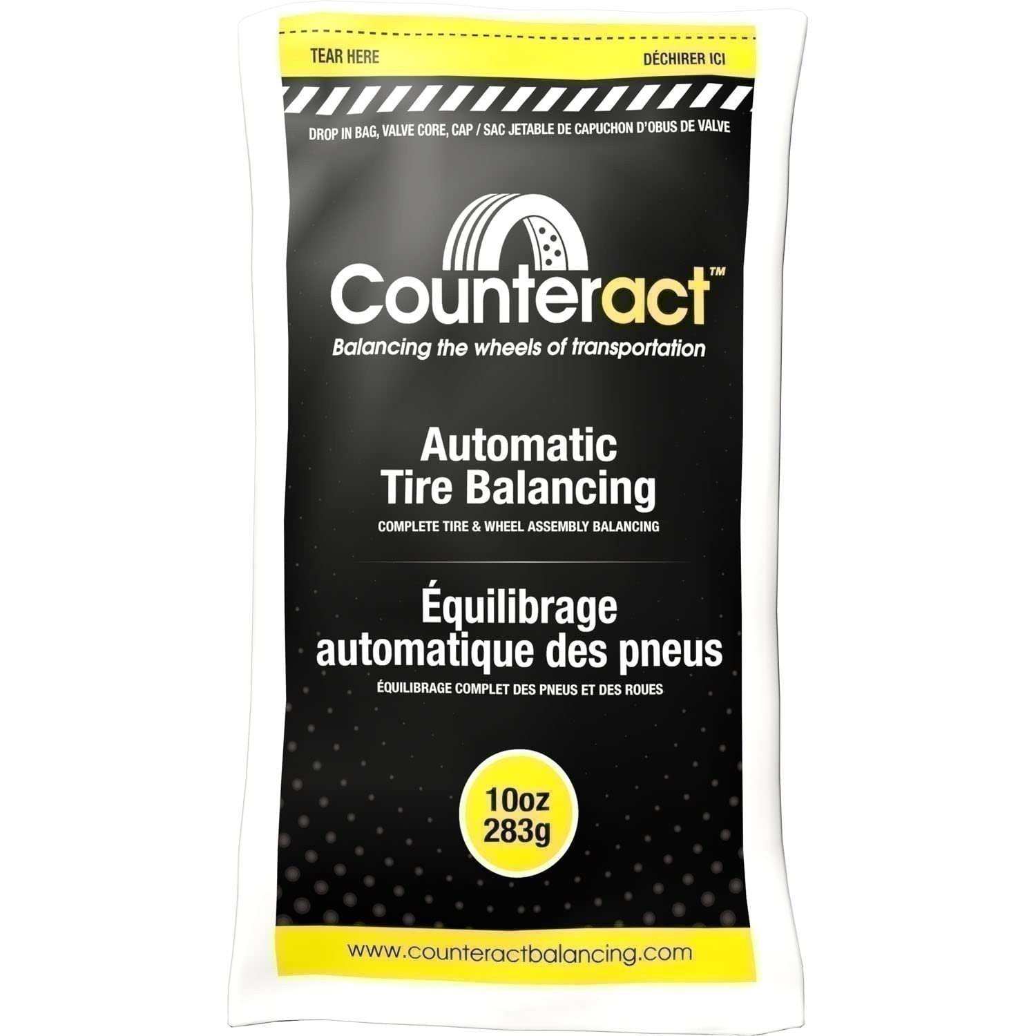 Counteract Balancing Beads are the economical way to balance the vehicle wheel assembly for the lifetime of the tire. Made of coated glass spheres, Counteract balancing beads will not cause damage to the inner liner of the tire, they won't clump, regardless of excess moisture and are TPMS compatible.