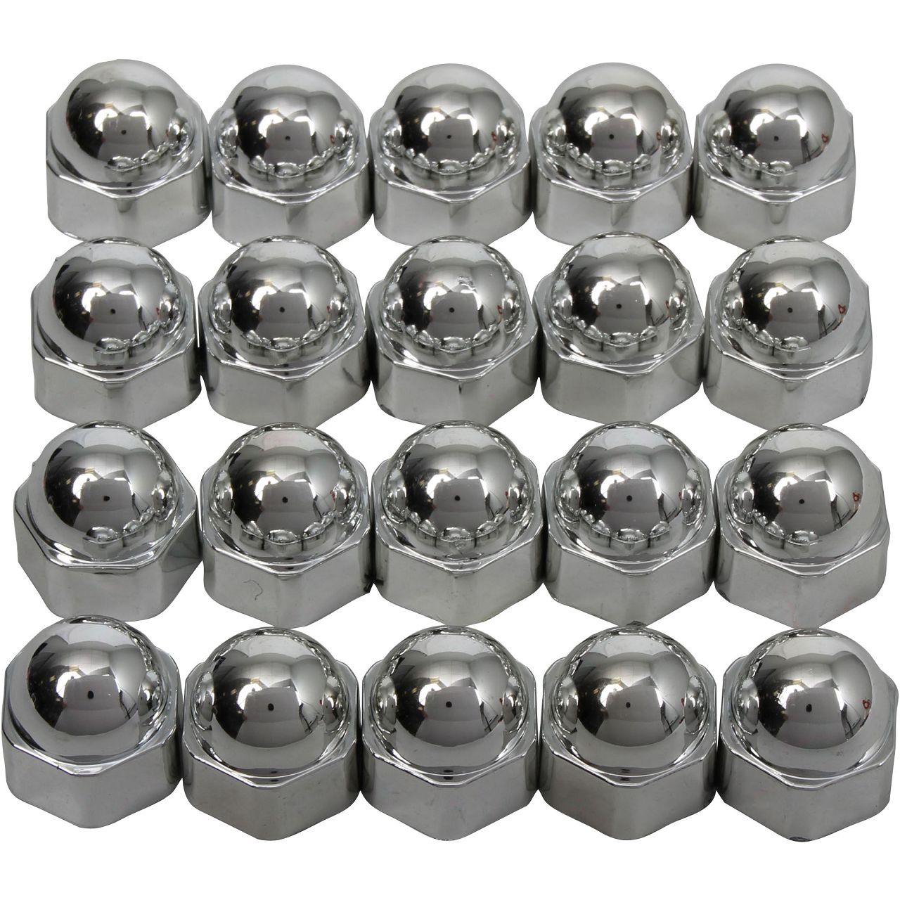 - Rallye-Caps: Radmuttern-Kappen für alle Fahrzeuge passend, zum Aufstecken auf die vorhandenen Radschrauben. Material Kunststoff verchromt. Inhalt 20 Stück. Schlüsselweite 19 mm.