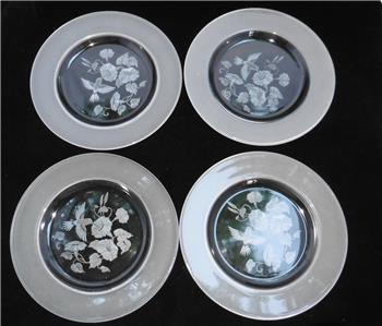 This is a very nice set Hummingbird glasses by AVON. Lead Crystal. This is a set of 4 luncheon plates, great to excellent condition, might have a few light scratches. 8" across. Over 3.5lbs before shipping.